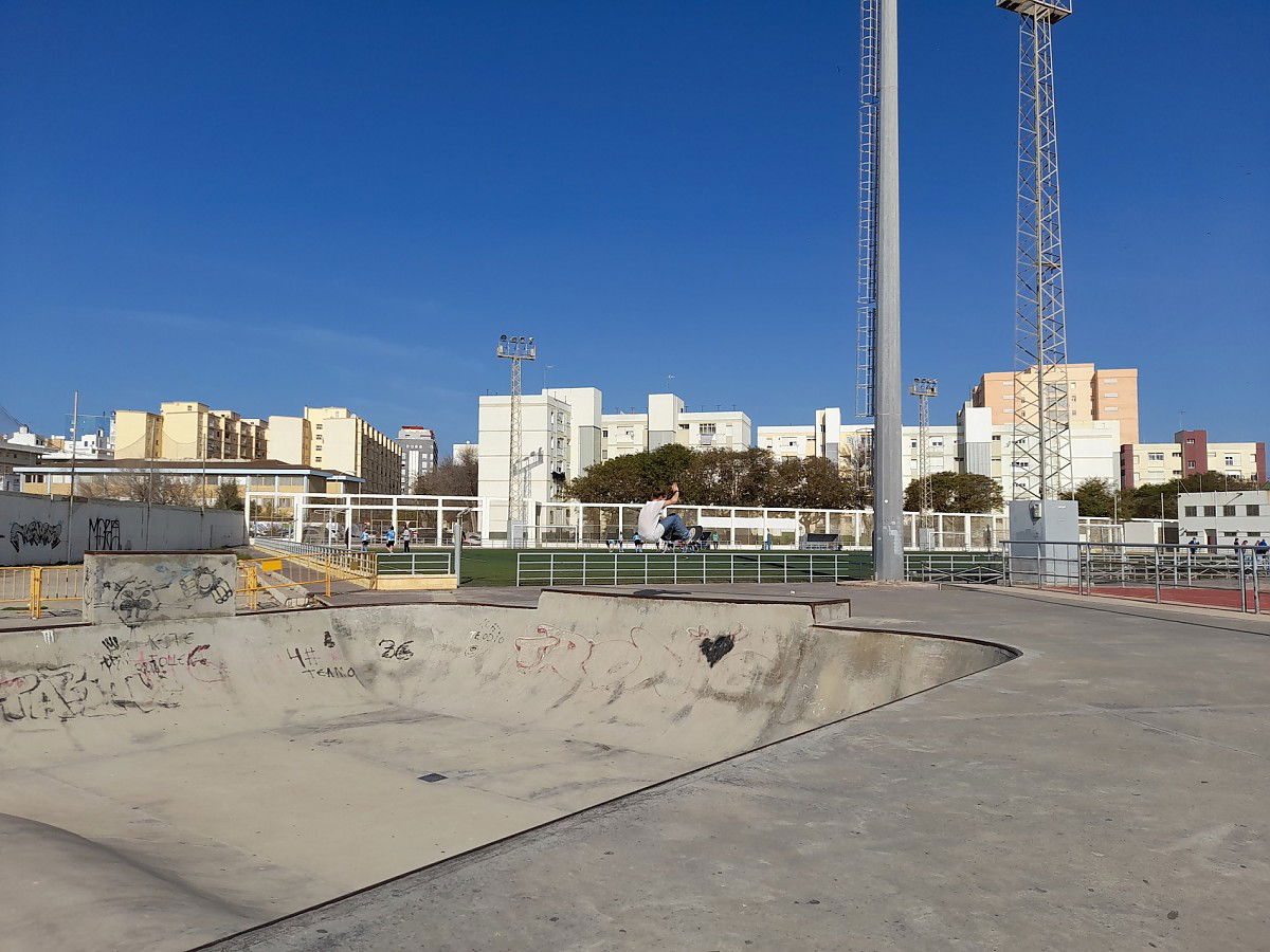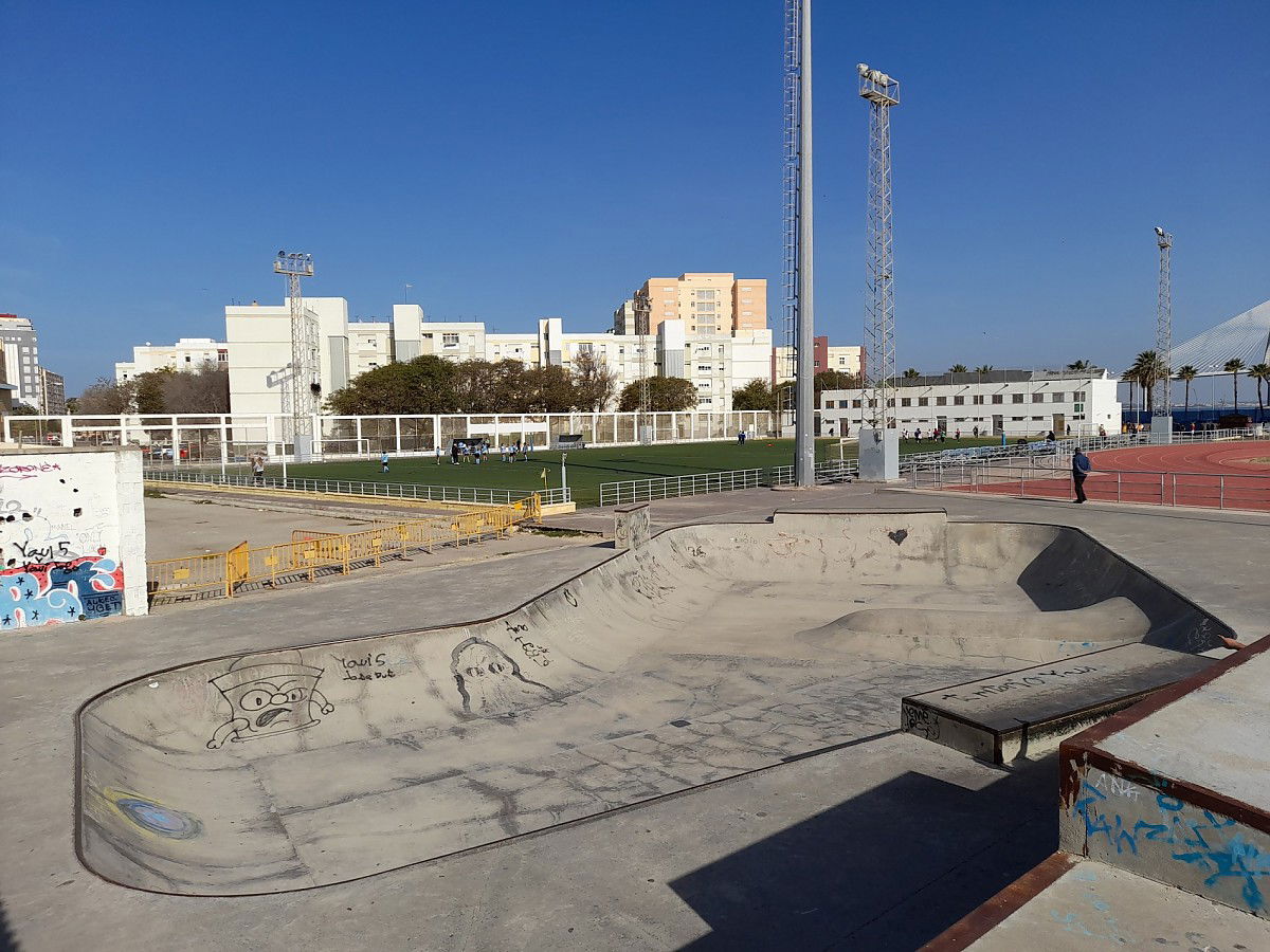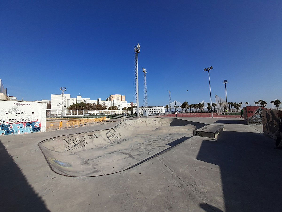 Cadiz skatepark consists of a concrete bowl and several banks.