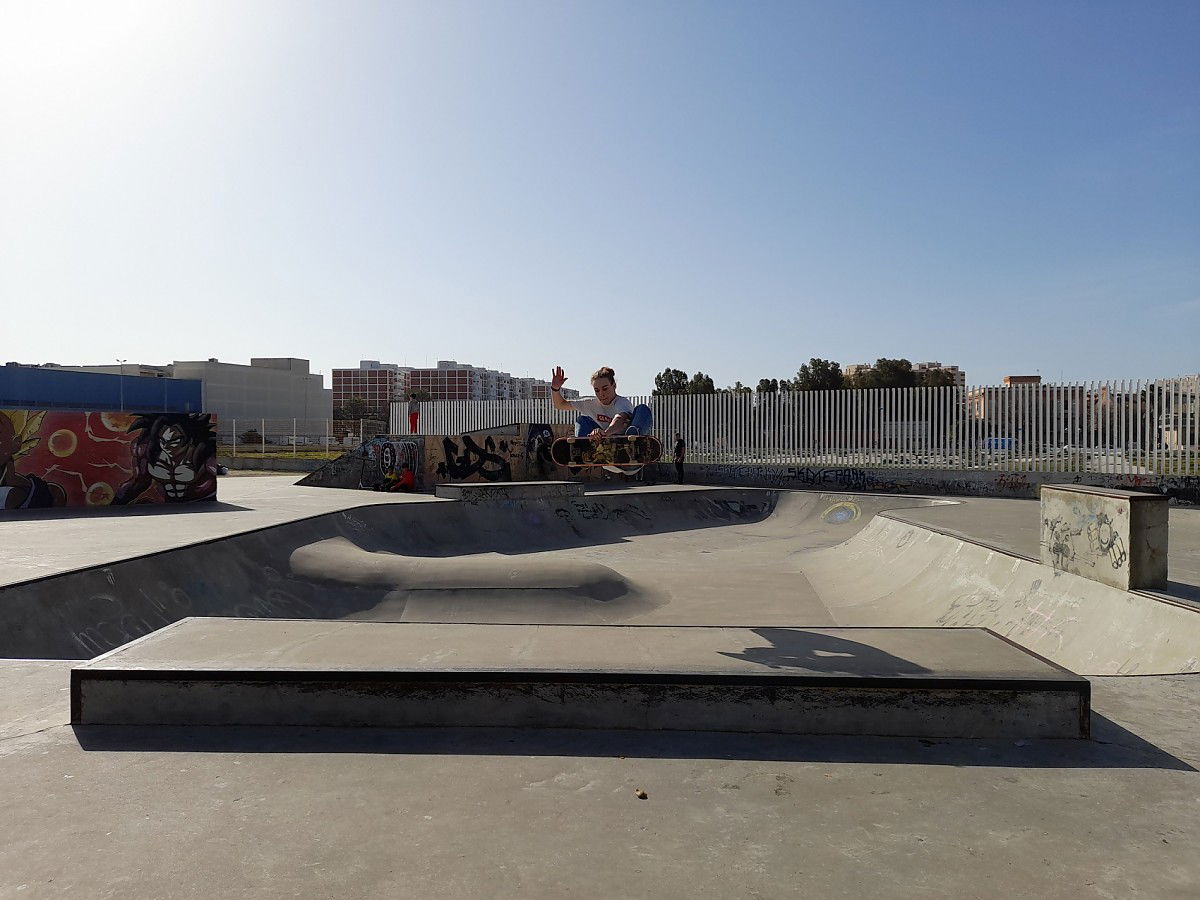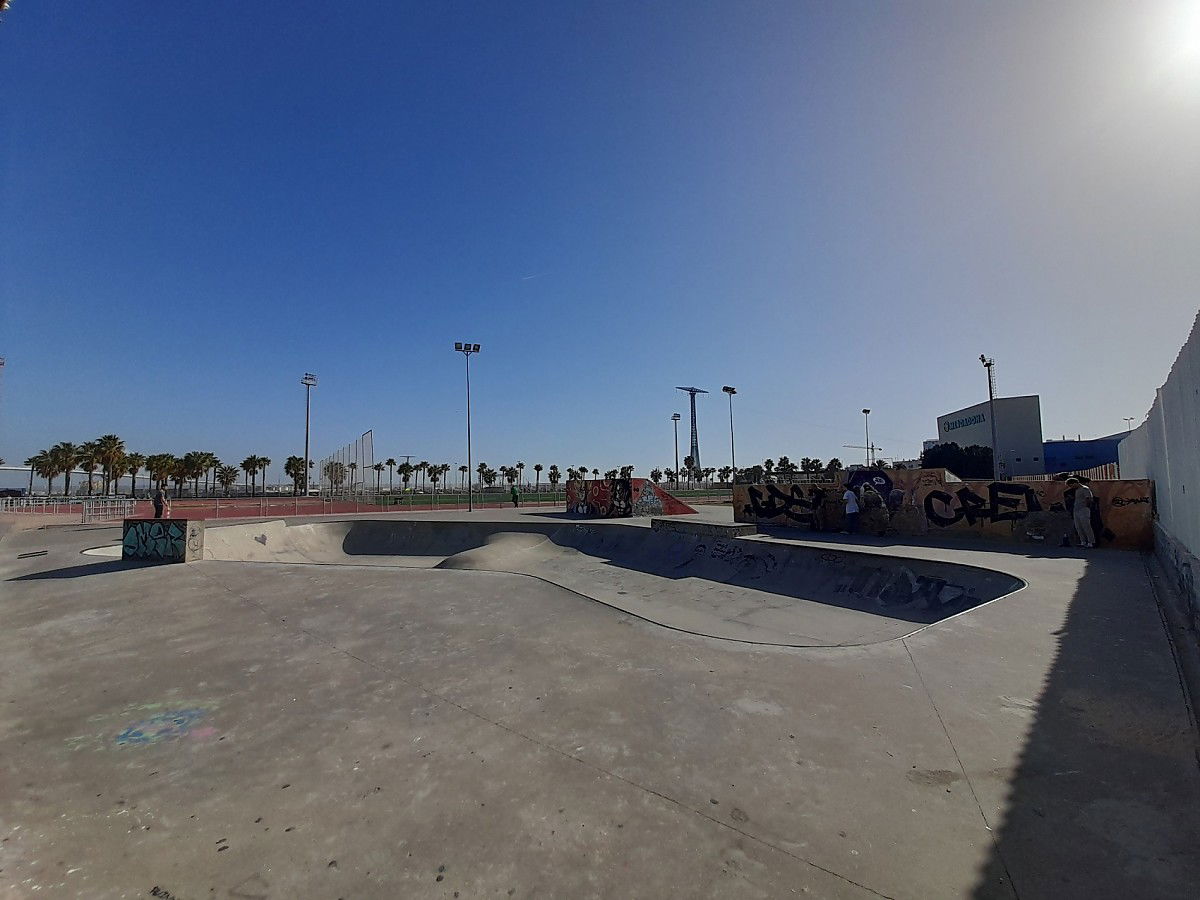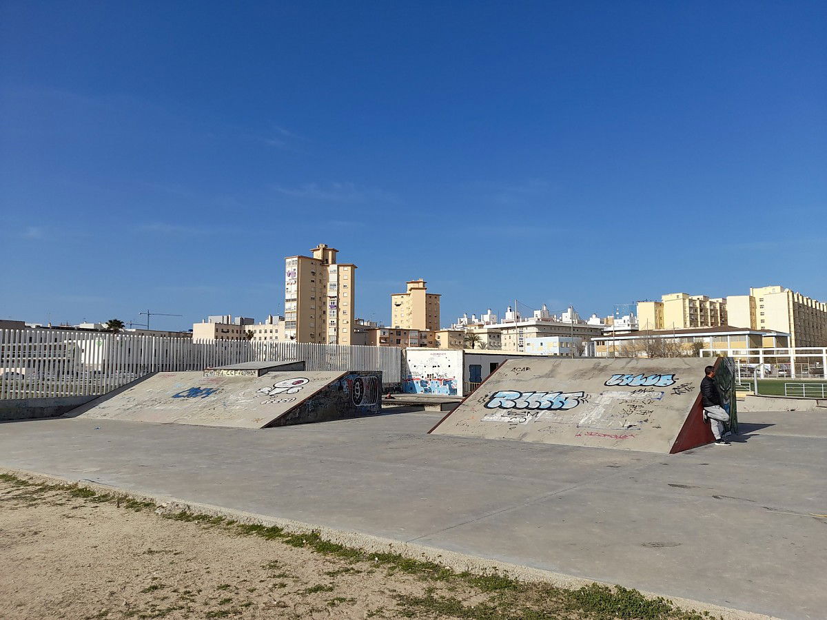 Cadiz skatepark consists of a concrete bowl and several banks.