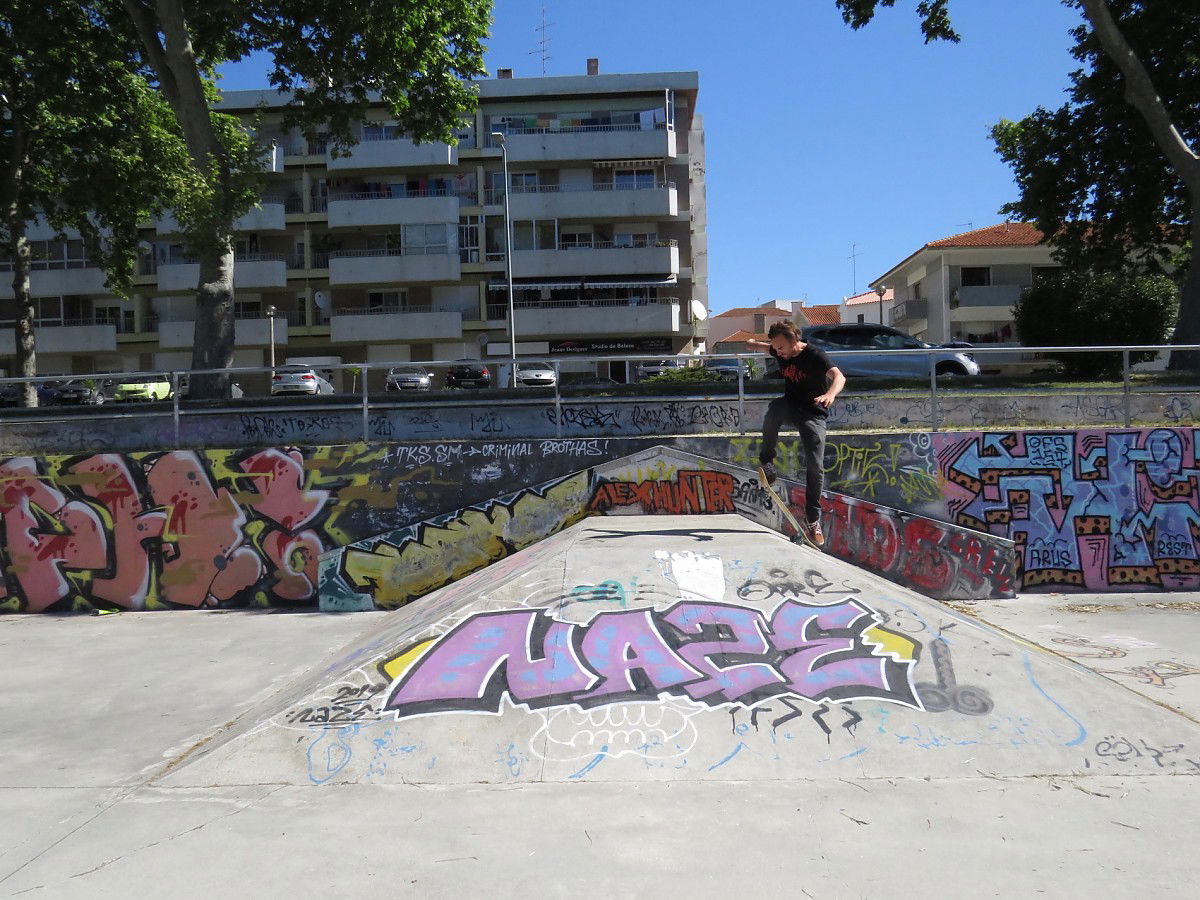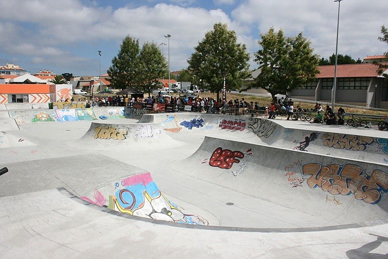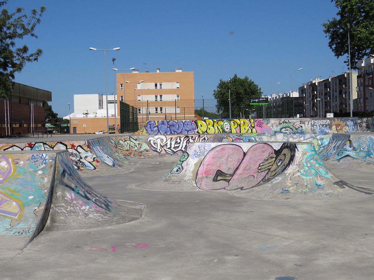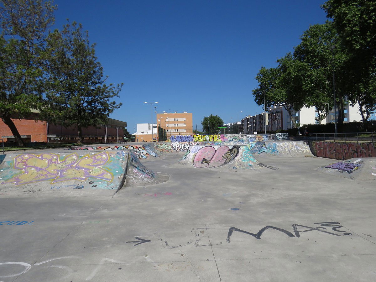 Caldas da Rainha is a medium-sized Portugues city in the Leiria district, with a population of 52270 (Census 2021). Next to the Escola de Hotelaria e Turismo do Oeste you will find the skatepark in Caldas da Rainha. The skatepark is made up of two open bowls connected to a transition area. The skatepark also features a separate street section.