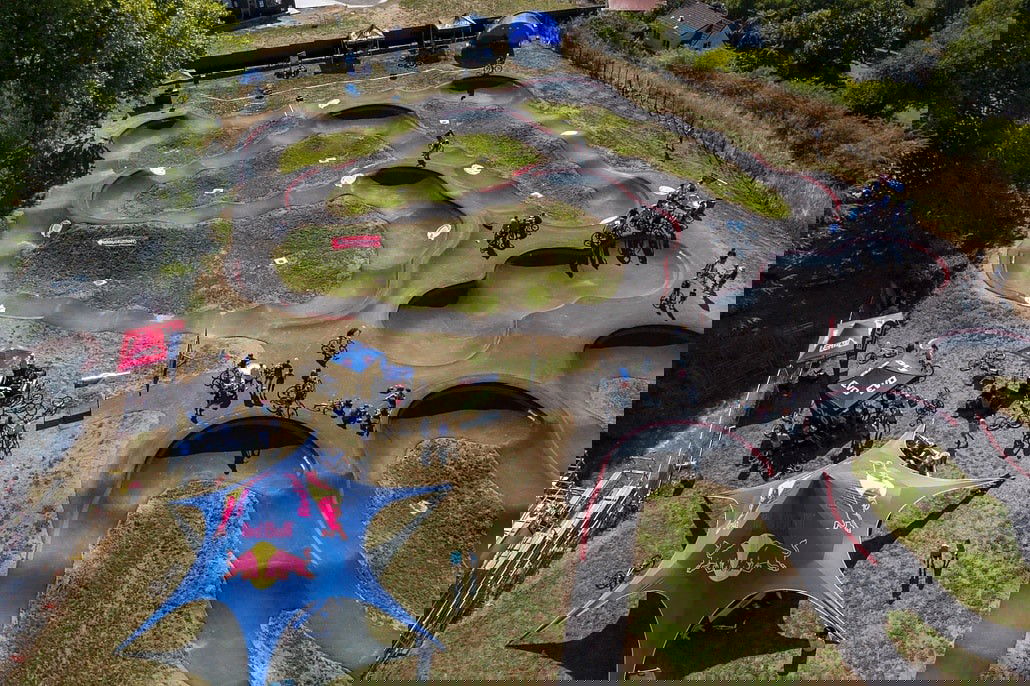 Cambridge pumptrack is an asphalt bike and skateboard track built by Velosolutions. There is a concrete skatepark nearby.  The track offers a fun 196m long track and fun 222m jump track with a bowl in the middle of the two tracks.
