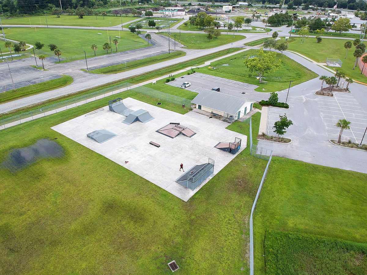 Captain Don Cerbone Memorial skatepark is made up of a back and forth run with a quarter pipe and bank on the sides of a funbox. The skatepark also features a miniramp.