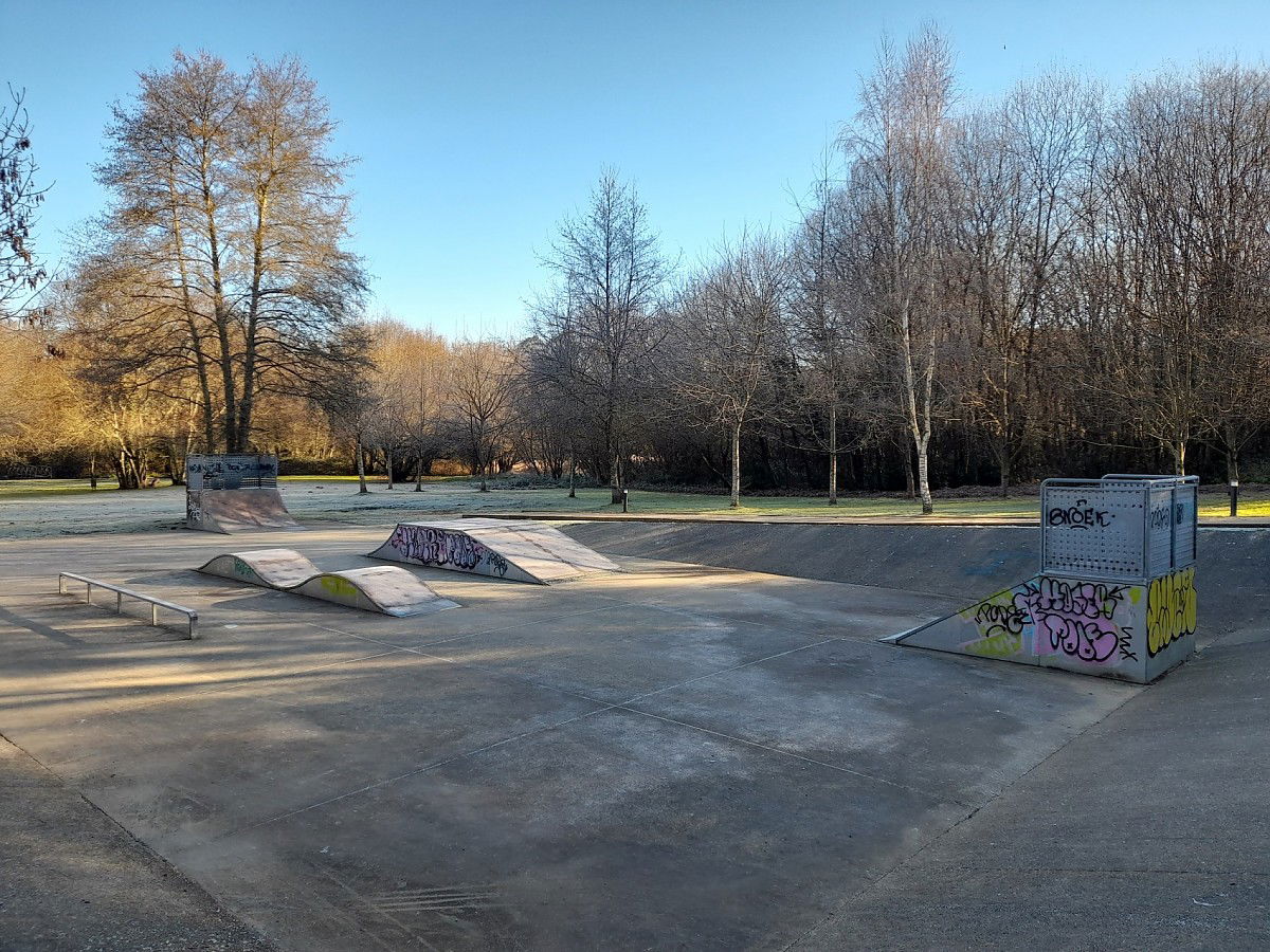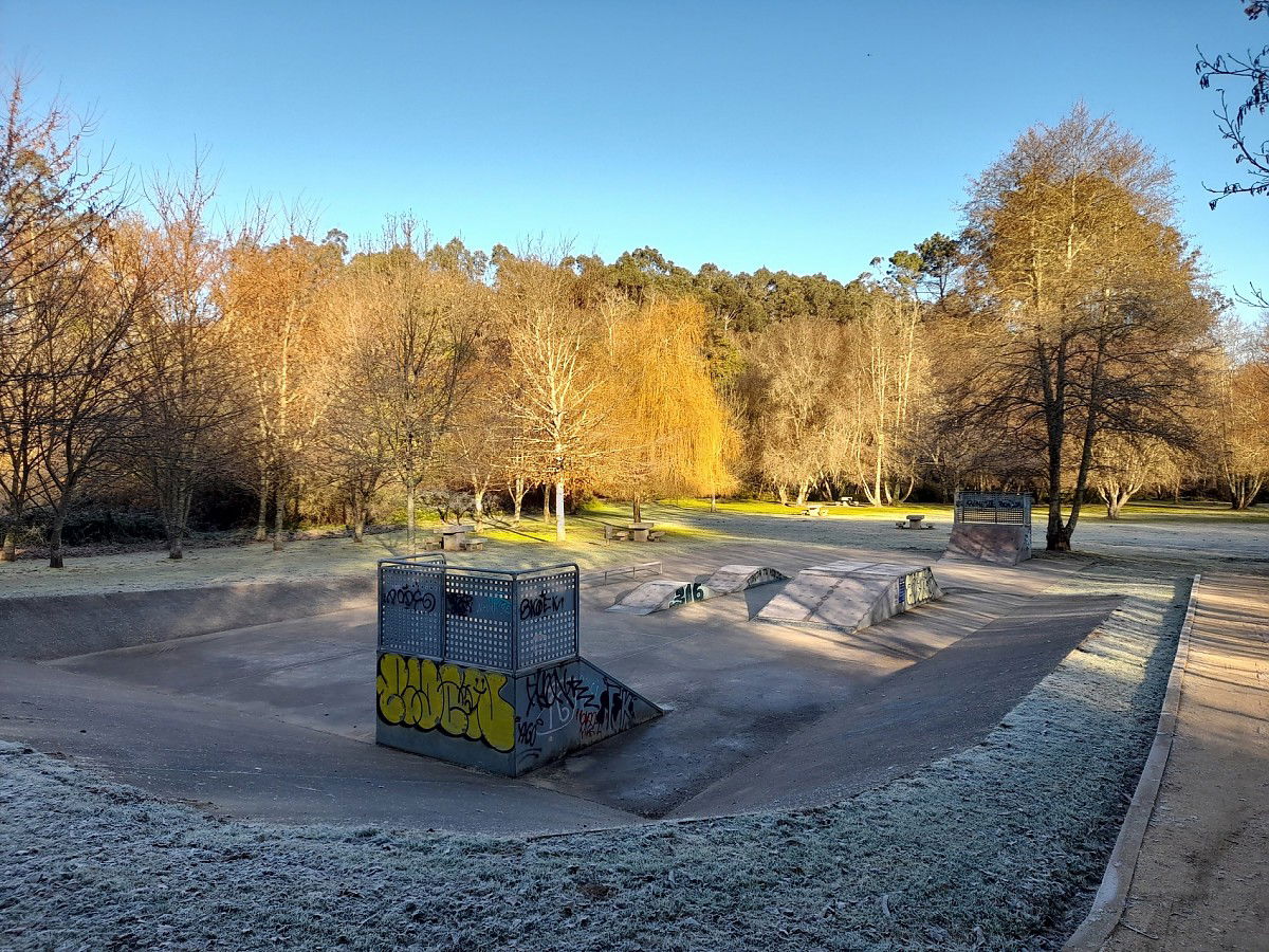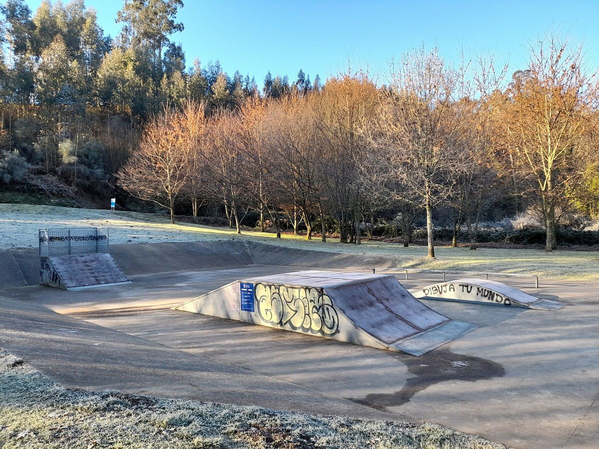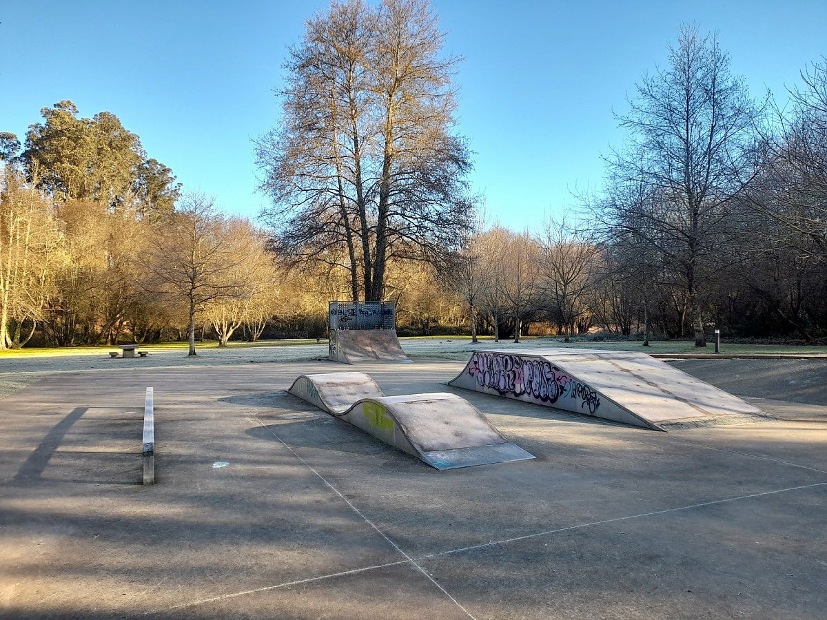 Carral skatepark is made up of a back and forth run with a quarter pipe and flat bank either side of a funbox.