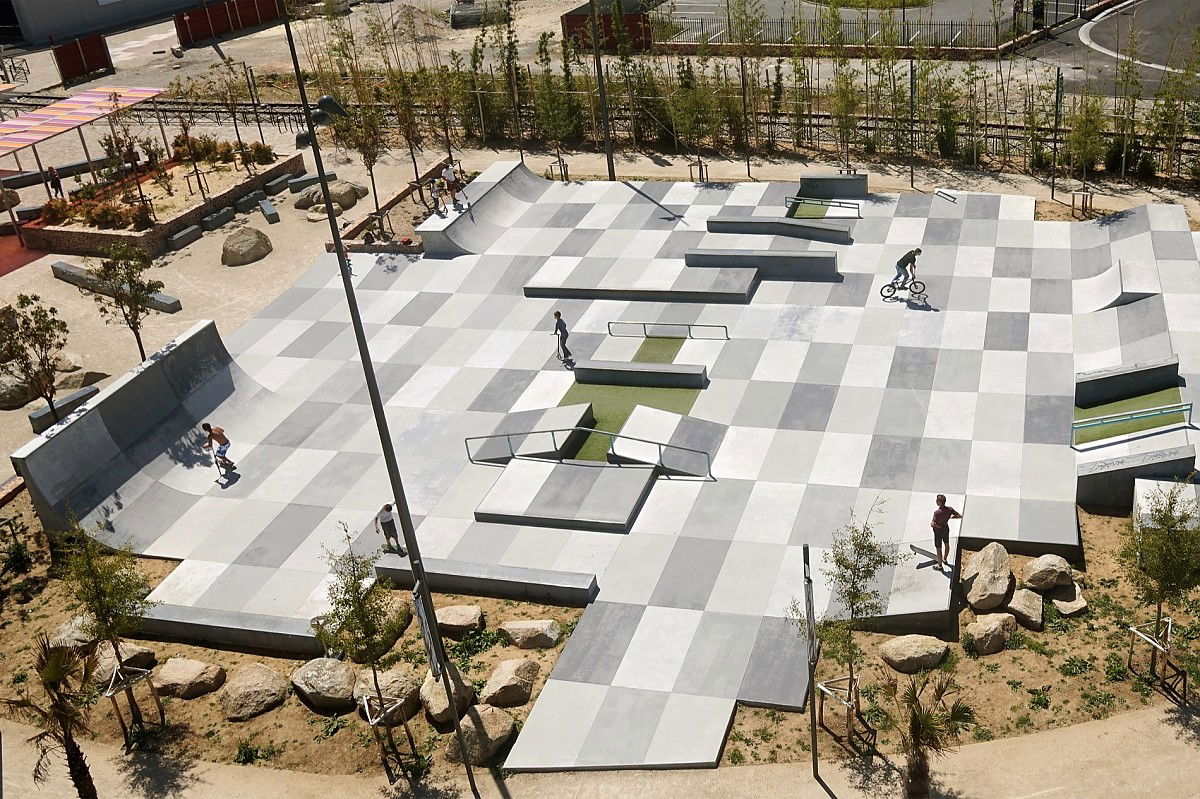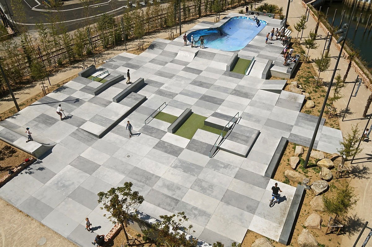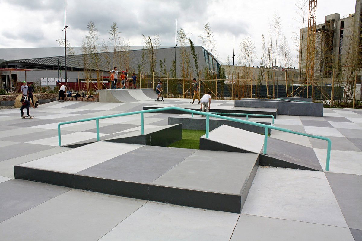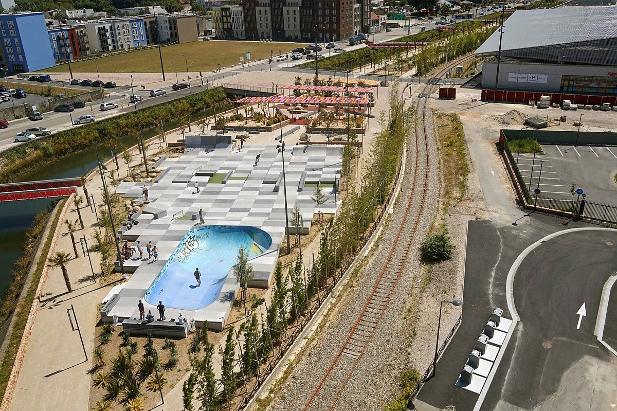 The 945 m² Cherbourg skatepark was designed and built by Constructo Skateparks in 2014 who teamed up with Serge Renaudie for the landscape architecture. Total estimated cost: 330000€.