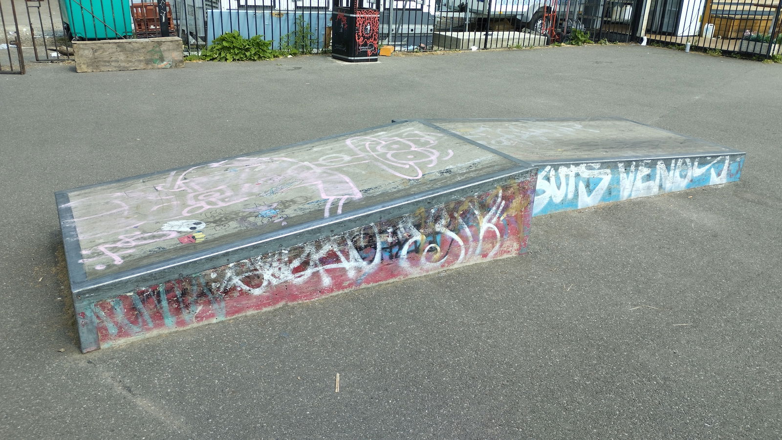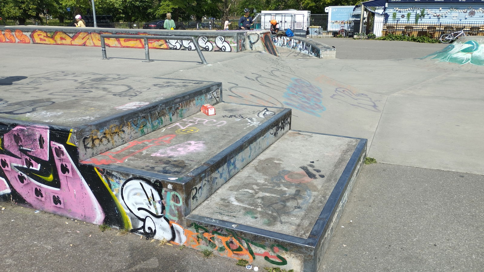 Really good concrete surface with great obstacles, and a very good miniramp.