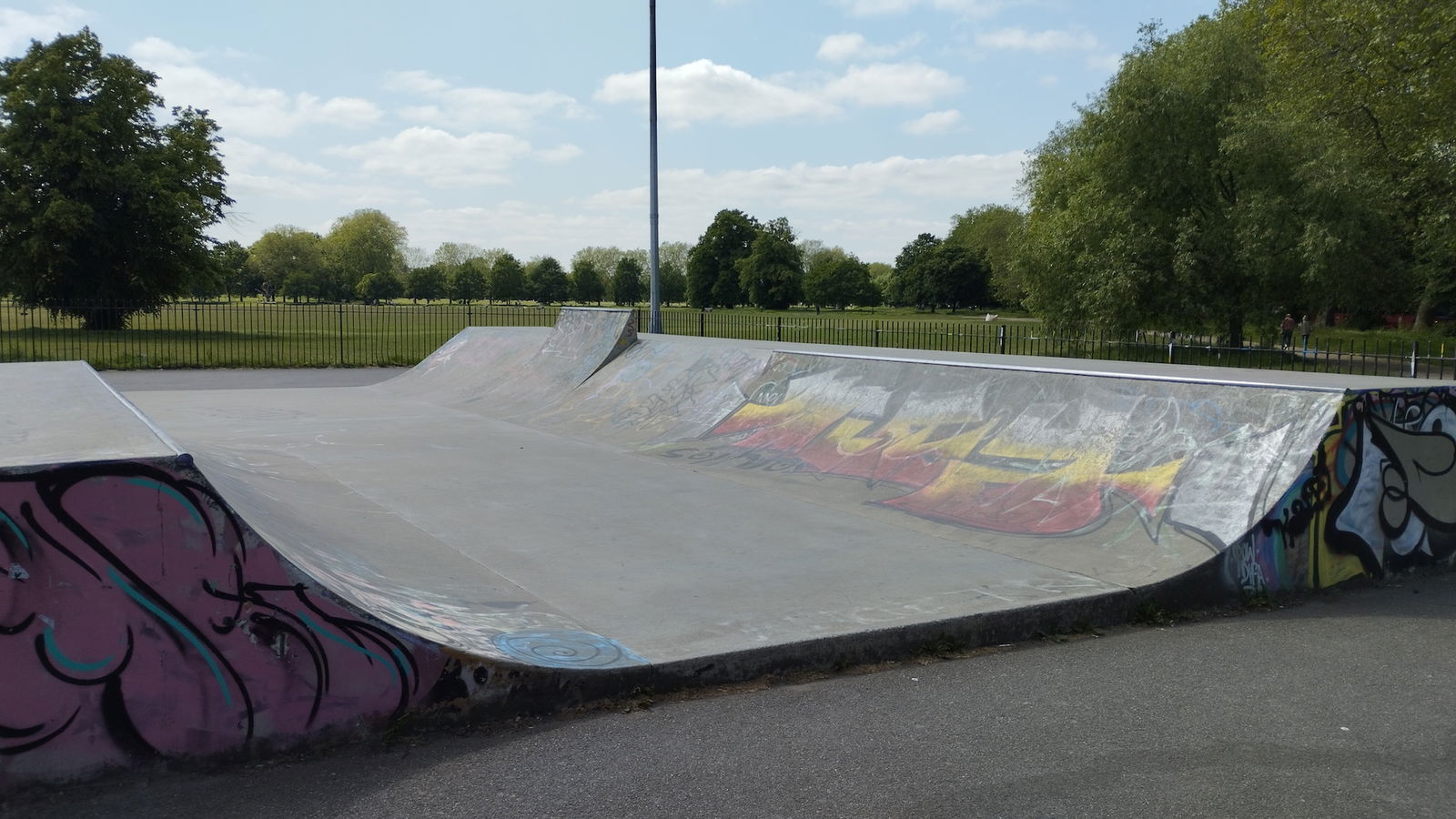 This skatepark in Clapham Common was renovated by Freestyle in 2012. The park is a mixture of concrete and metals ramps. The skatepark is well designed and has a lot of interesting obstacles and flowing lines.
