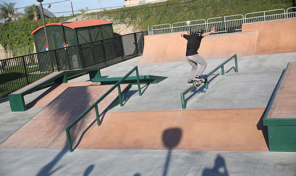Clarkdale Park Skatepark in Hawaiian Gardens, California, underwent a significant renovation in 2018, led by SpohnRanch Skateparks. The park originally had outdated metal ramps and a worn slab, but the facelift introduced modern concrete terrain. The new design includes quarter-pipes, manual pads, grind rails, and color accents to add aesthetic appeal. The project involved advanced construction techniques, such as using structural styrofoam to create elevated sections. This upgrade has enhanced the park’s functionality and appeal, making it a modern, well-loved community space.