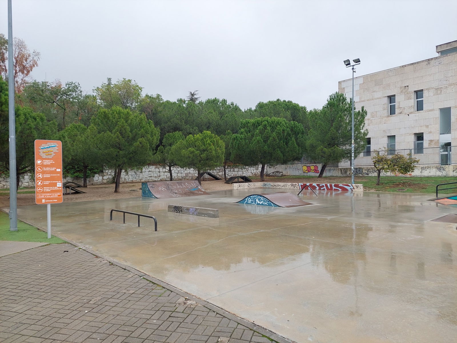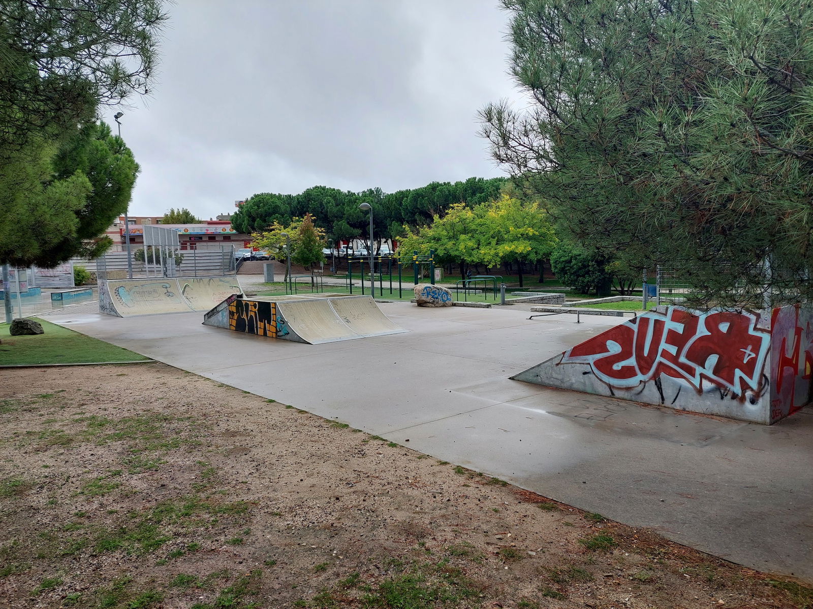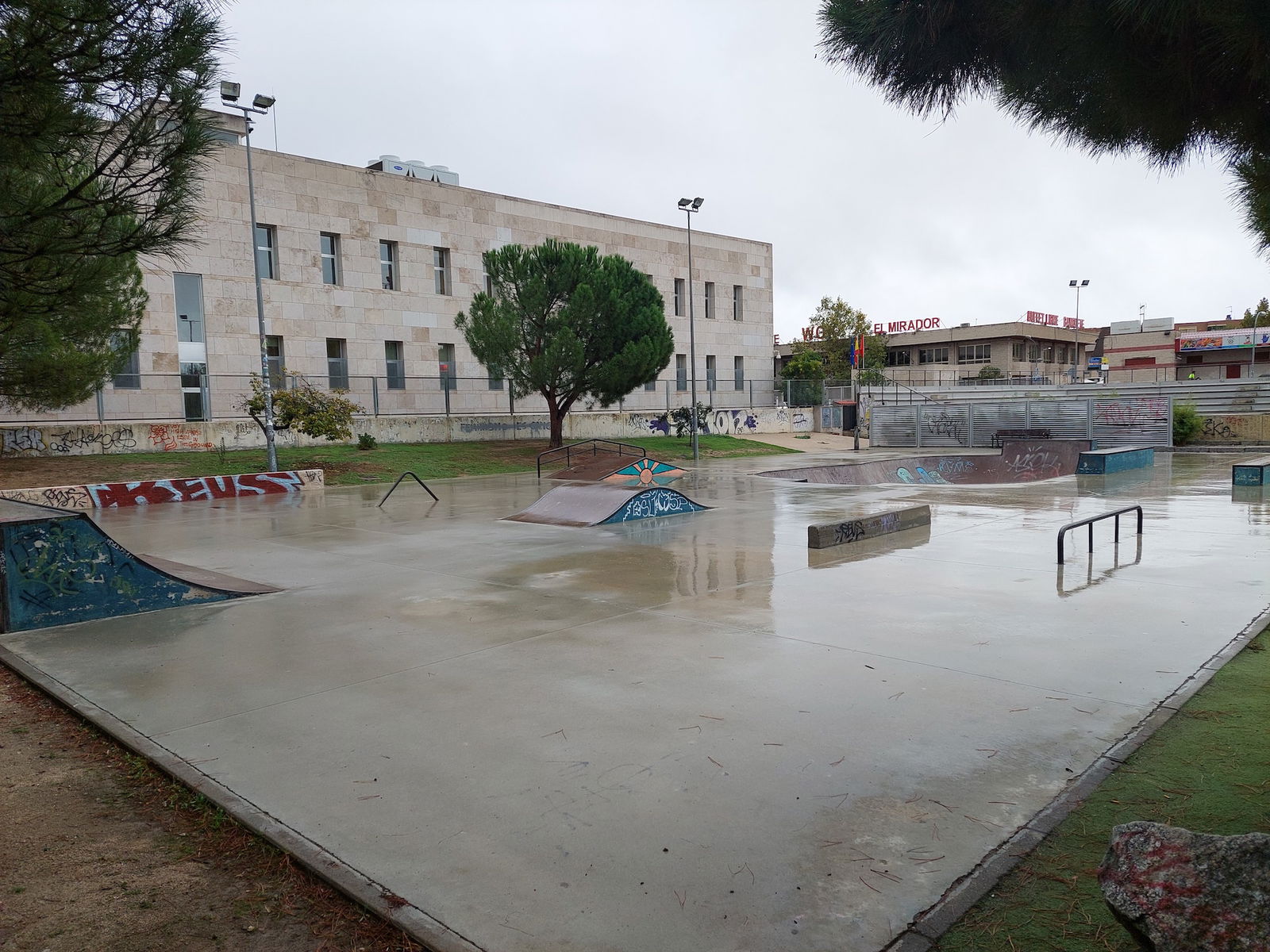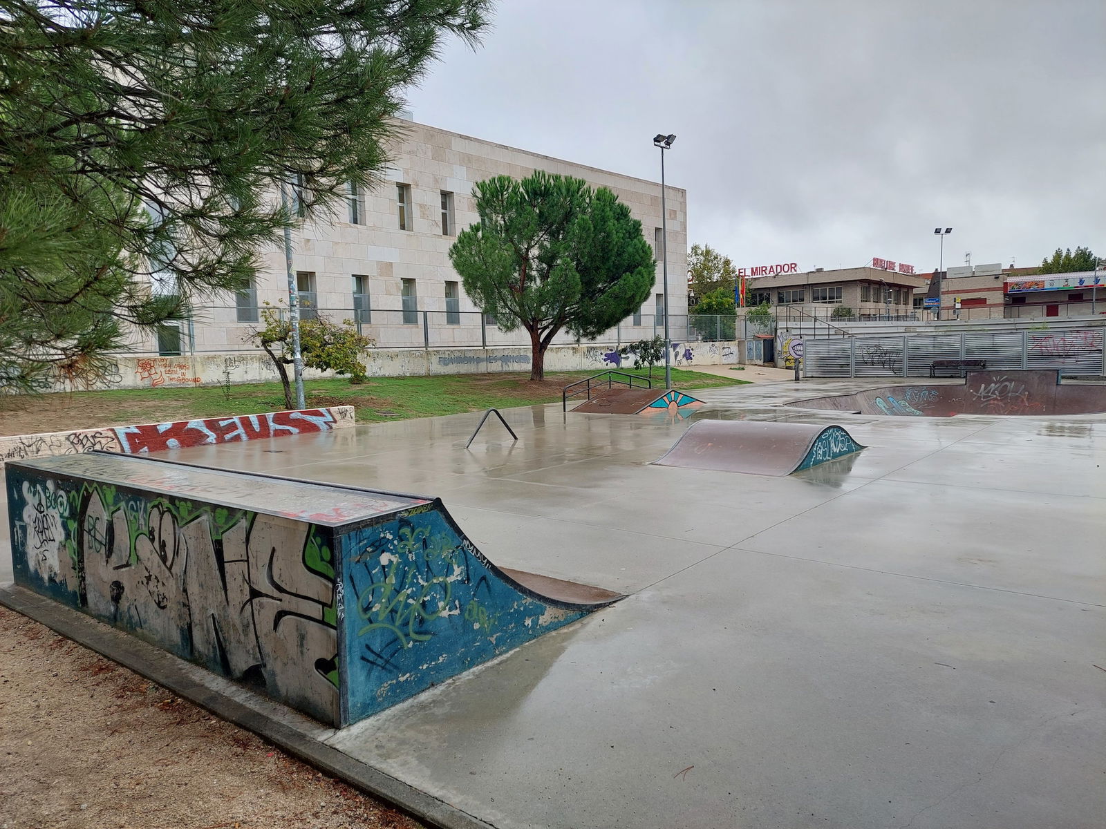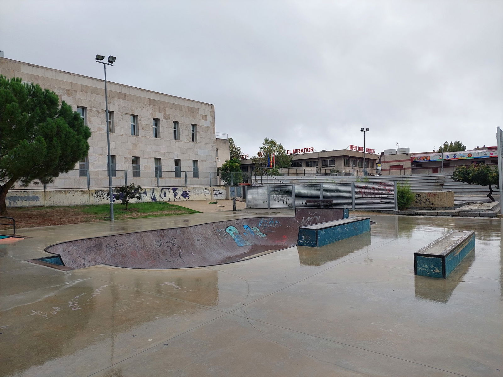 Colmenar Viejo skatepark is a concrete skatepark featuring a bowl and small street area.