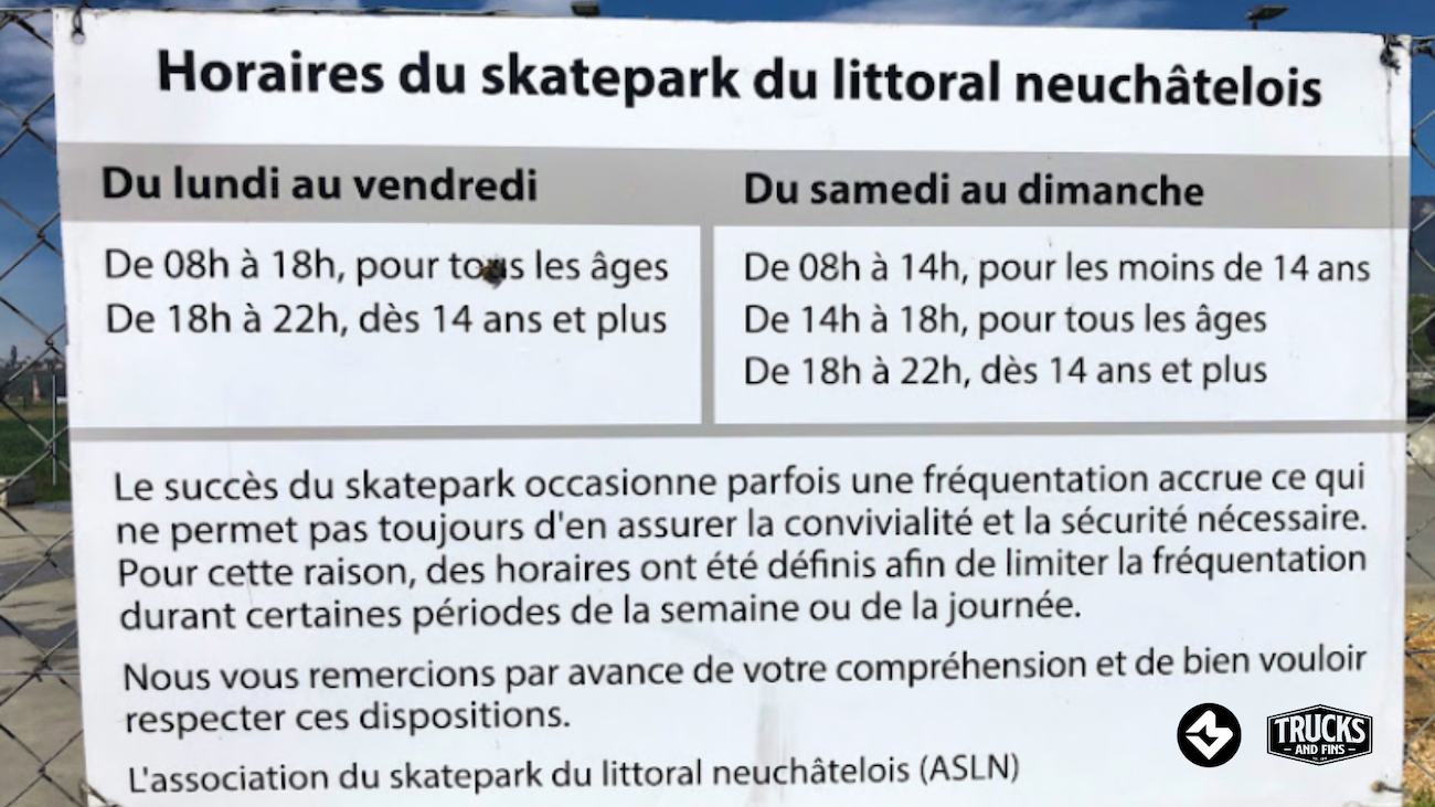 The AUSLN (Skatepark de Colombier) is located between Lake Neuchâtel and Neuchâtel-Colombier airfield. The skatepark features a bowl and large street area, packek with obstacles.