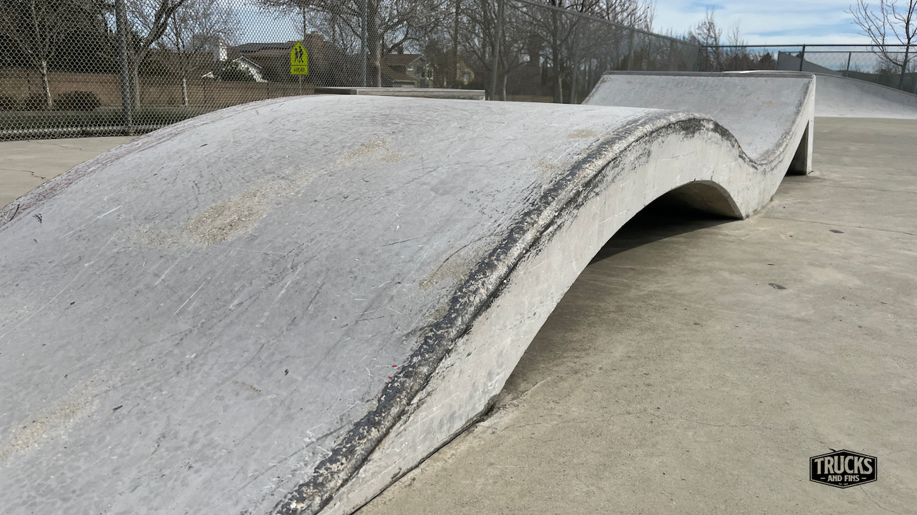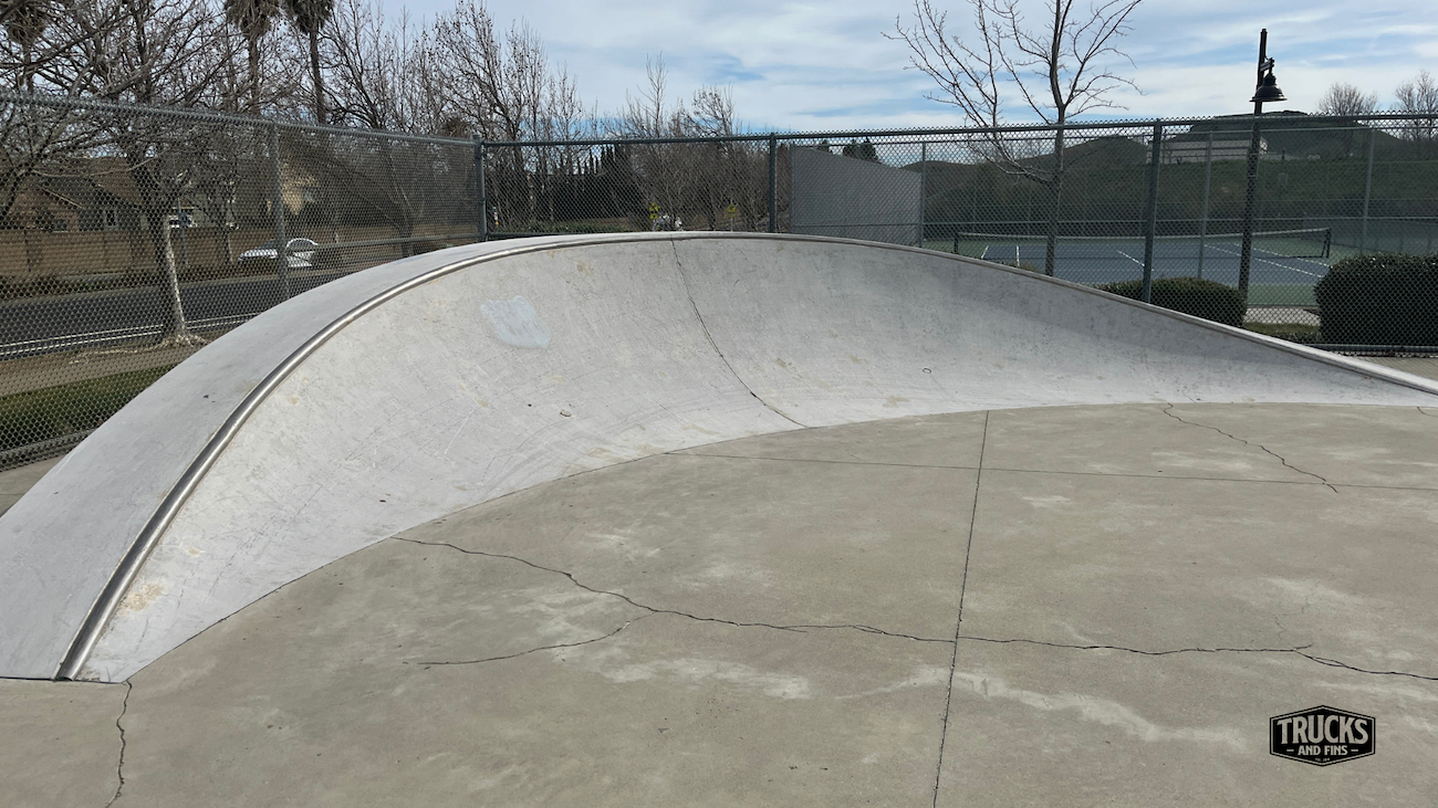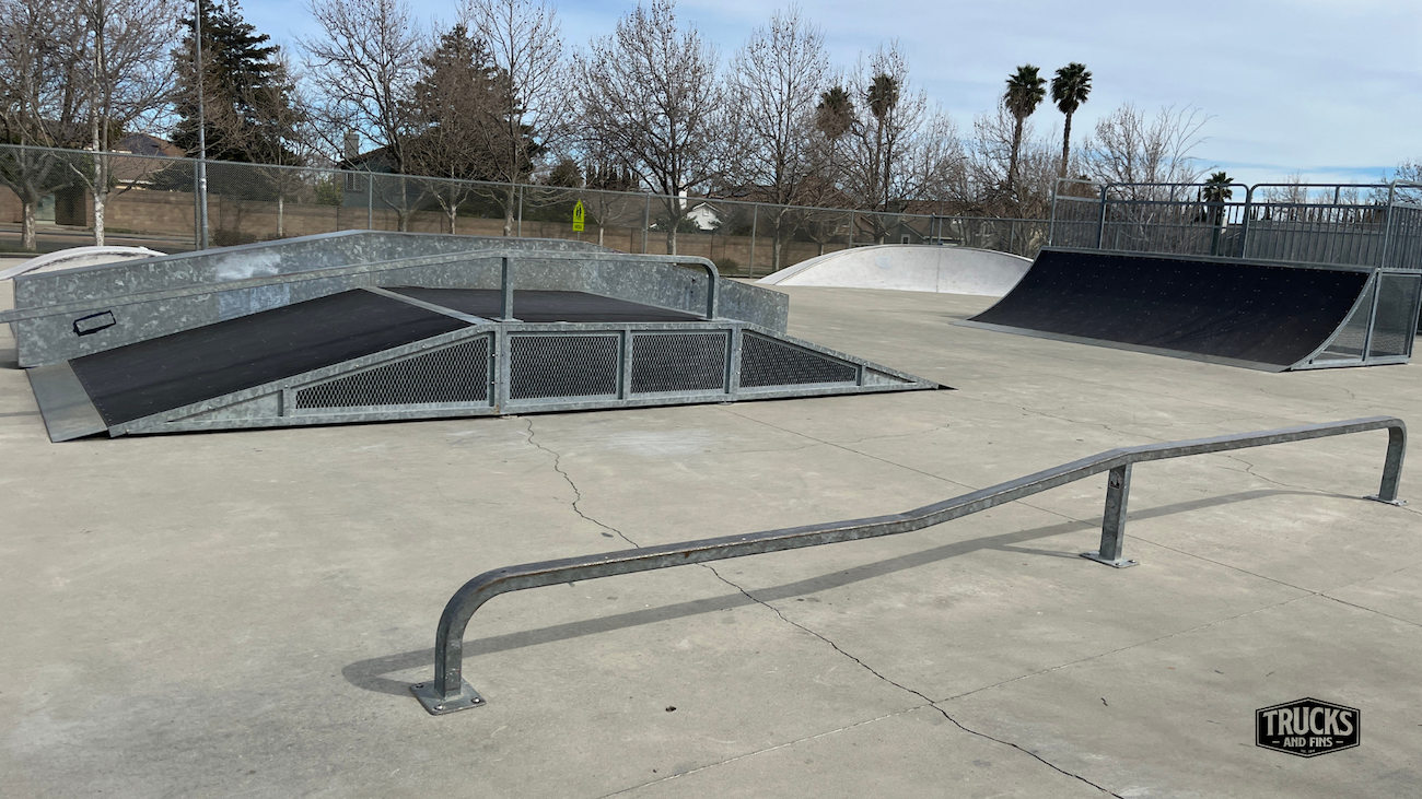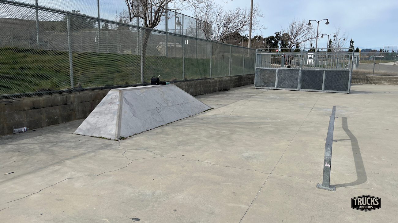 Cordelia skatepark is made up of a back and forth run with a quarter pipe and flat bank on the sides of a funbox. The skatepark also features a miniramp.