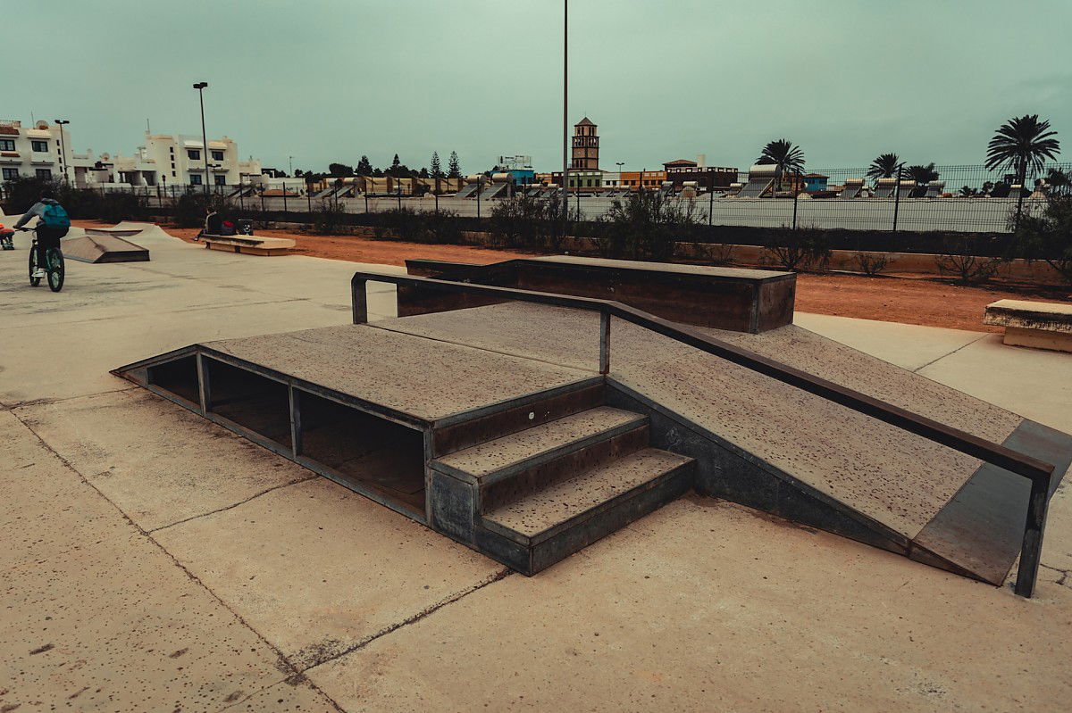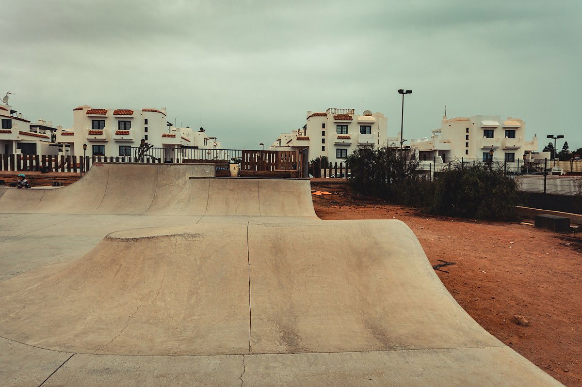 Located at C. Lanzarote 13 in Corralejo (35660 Las Palmas, Fuerteventura), this modern outdoor concrete skatepark features a dynamic mix of bowl and street terrain — including volcano hips, roll-ins, quarter-pipes, funboxes, handrails, hubbas, curbs and ledges — making it suitable for riders of varying levels. Set in the sun-drenched, coastal environment of Fuerteventura, the park is a must-visit stop for traveling skateboarders, rollers and BMX riders looking to combine vacation with quality riding.
