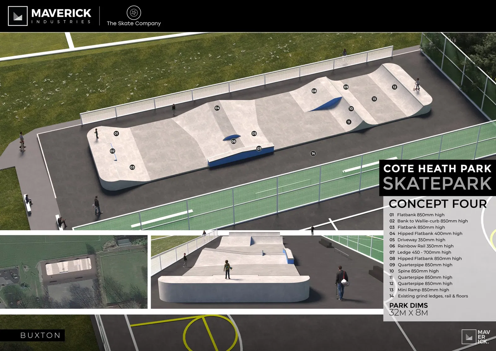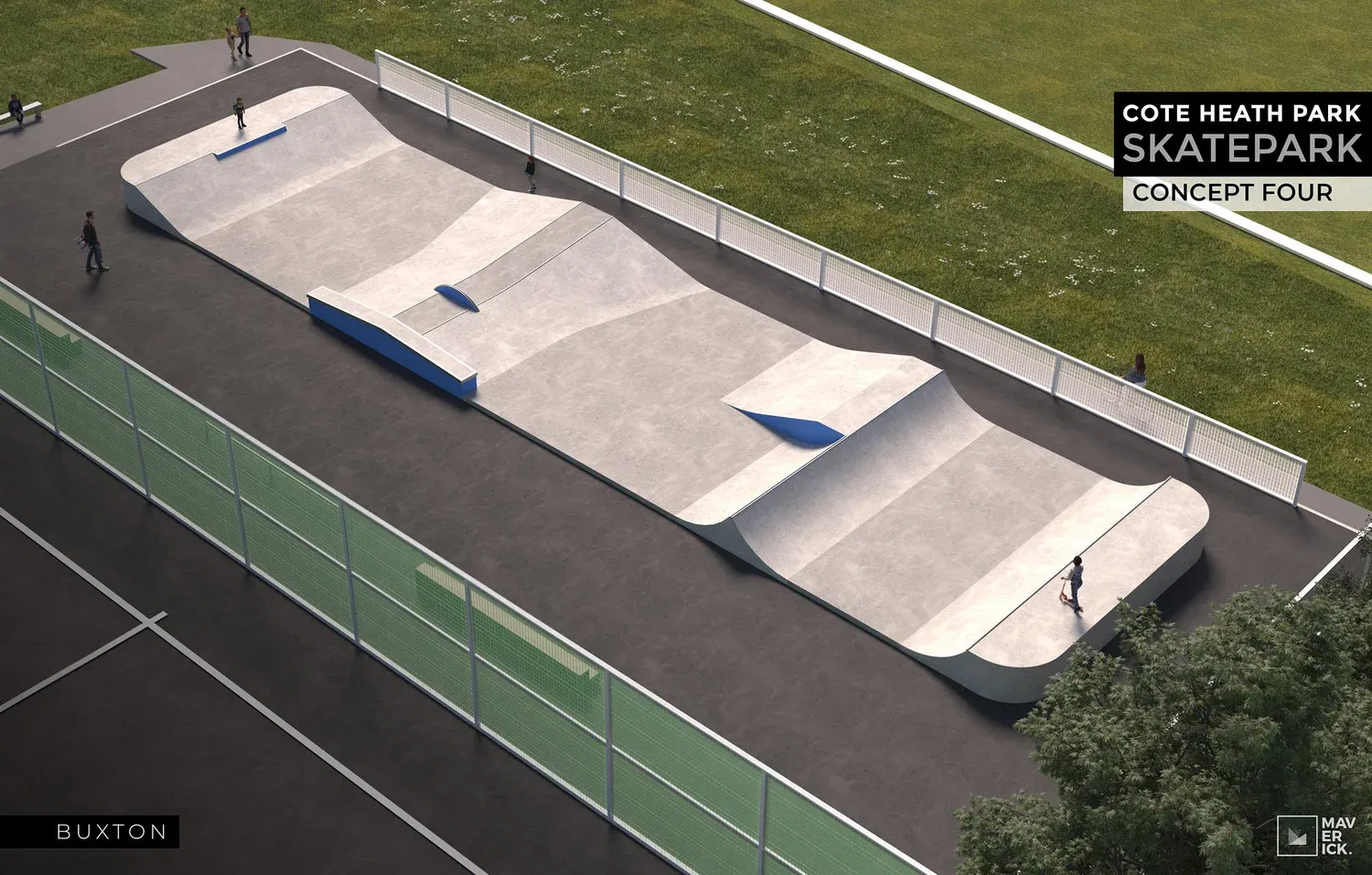 Cote Heath skatepark is a concrete park, made up of a miniramp with spine and several obstacles in a back and forth setup. The skatepark is located in Cote Heath Park and was built by Maverick skateparks in 2025.