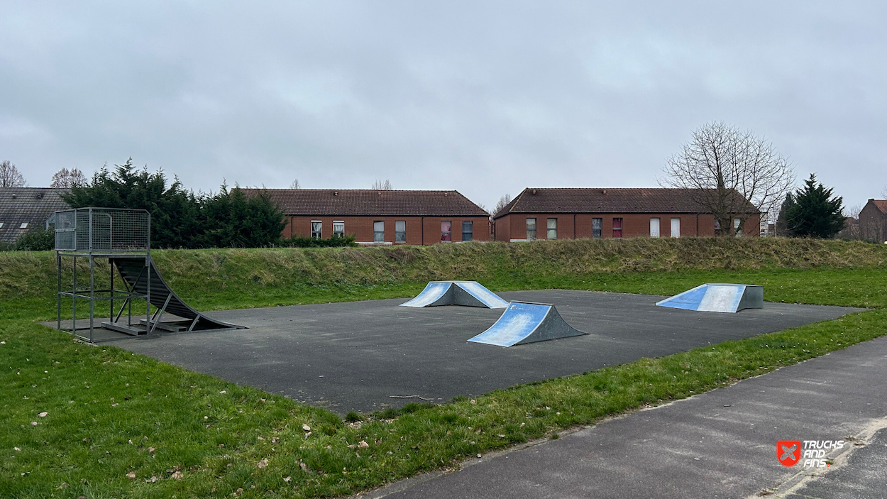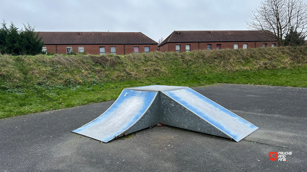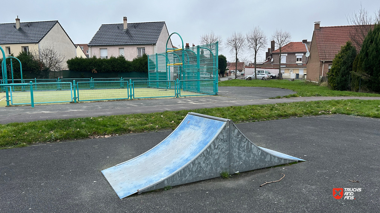 The Skatepark de Courcelles-lès-Lens is situated at 1 Rue Marcel Ledent, 62970 Courcelles-lès-Lens, France. This facility is part of the Espace Sportif De Proximité 1, a local sports complex designed to cater to various recreational activities. The skatepark features a back-and-forth layout with a quarter pipe and bank flanking a central funbox, along with additional obstacles to cater to various skill levels.