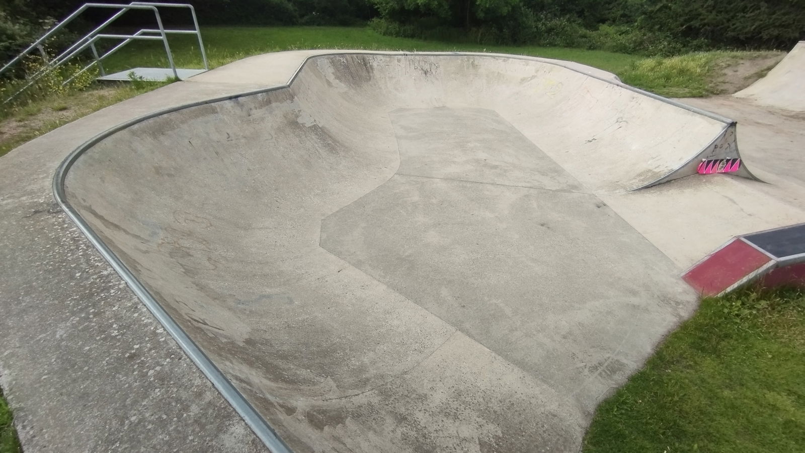 Epsom is an English town in the Borough of Epsom and Ewell in Surrey. Cox Lane skatepark is a concrete park, designed and built by Wheelscape skateparks in 2013.