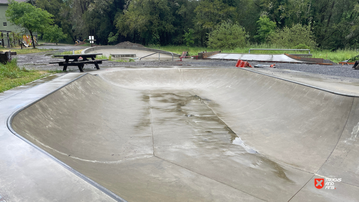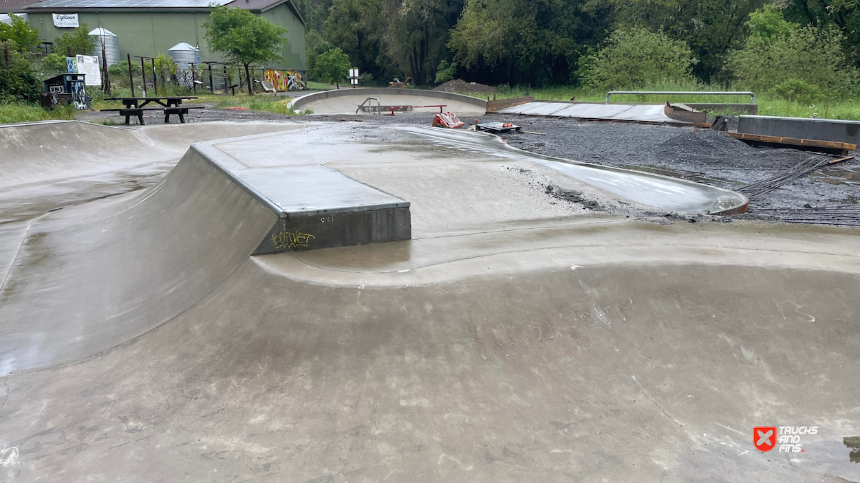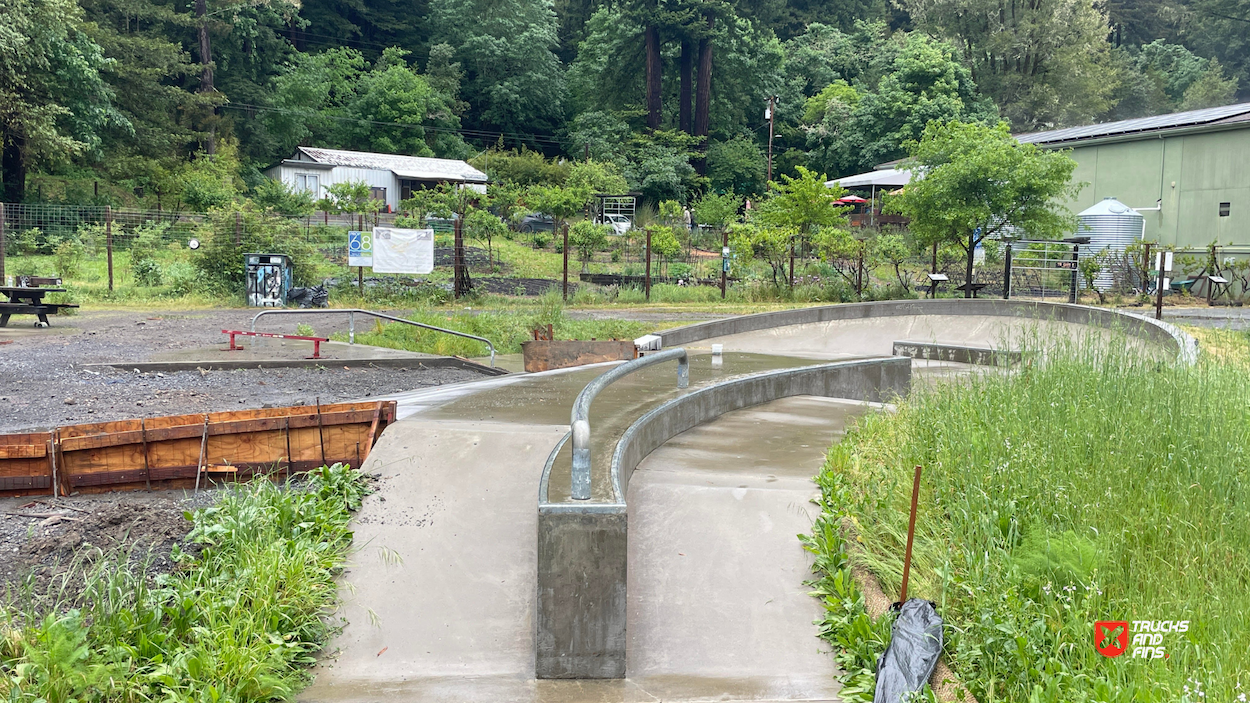 Creekside Park Skatepark in Monte Rio, California, was designed and built by SpohnRanch and opened in 2013. This 8,000-square-foot skatepark is located along the scenic Russian River and features a flowing, street-inspired snake run that wraps around a landscaped center. The skatepark was designed to blend harmoniously with the natural environment while providing a modern space for skateboarders of all levels.