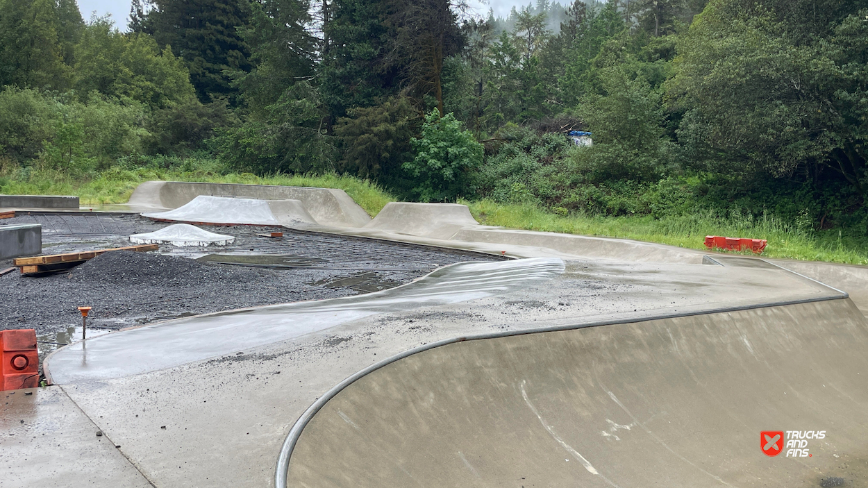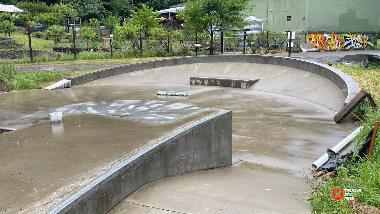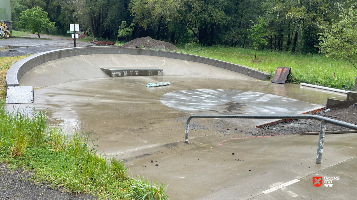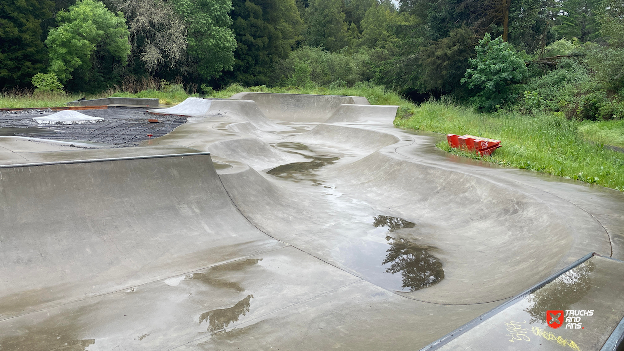 Creekside Park Skatepark in Monte Rio, California, was designed and built by SpohnRanch and opened in 2013. This 8,000-square-foot skatepark is located along the scenic Russian River and features a flowing, street-inspired snake run that wraps around a landscaped center. The skatepark was designed to blend harmoniously with the natural environment while providing a modern space for skateboarders of all levels.