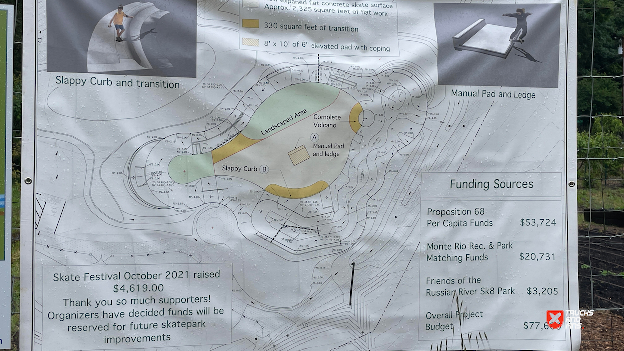 The park was part of a broader initiative by the Monte Rio Recreation and Park District to improve recreational facilities in the area. The funding for the skatepark came from local government efforts and community involvement, with the goal of creating a safe, well-designed space for local youth to skate. The skatepark is open from dawn to dusk and does not have lights, but it serves as a key community hub, offering quarter pipes, mini ramps, rails, and a smooth concrete bowl section.