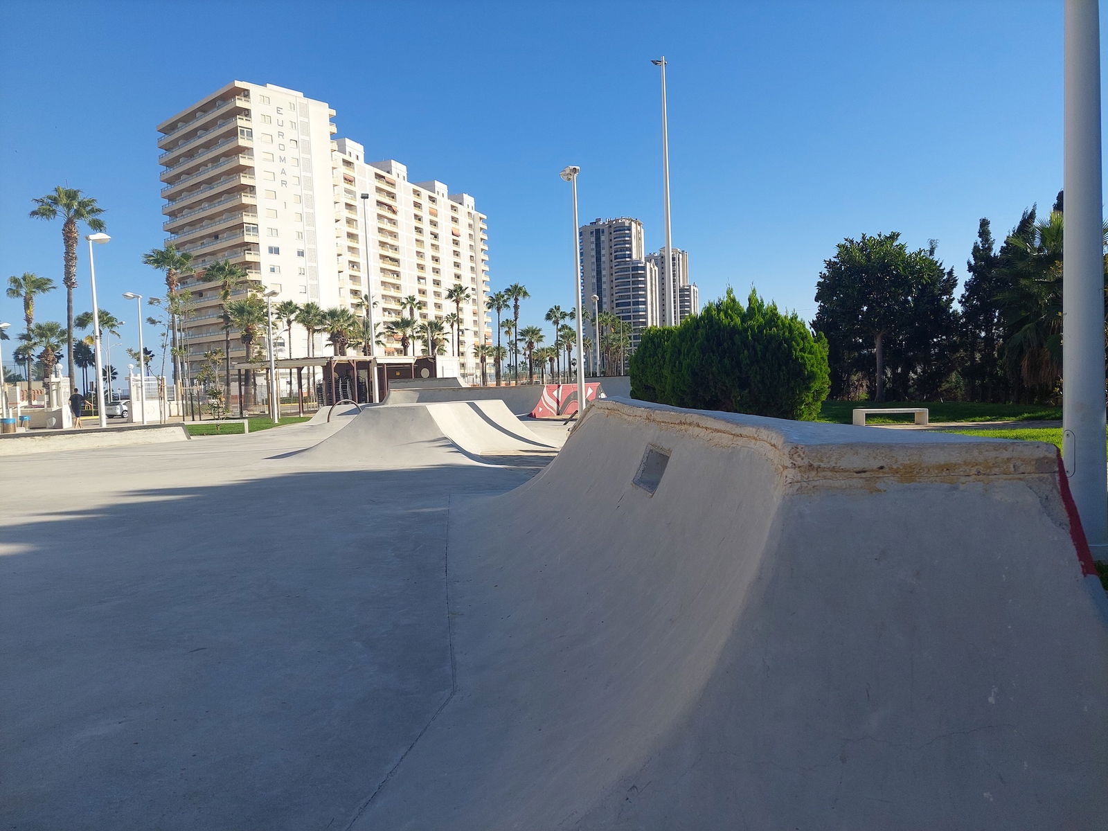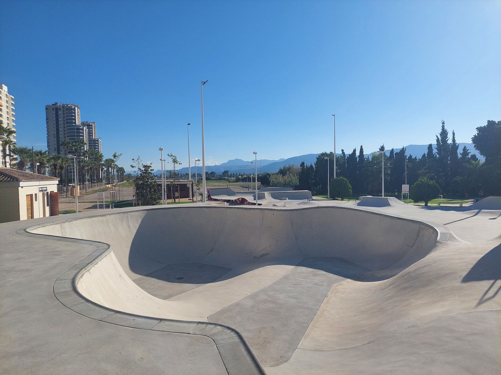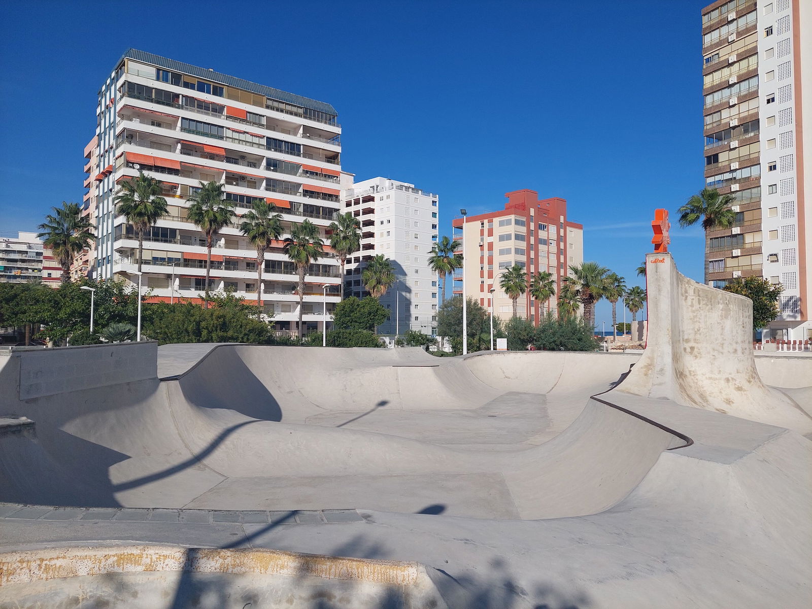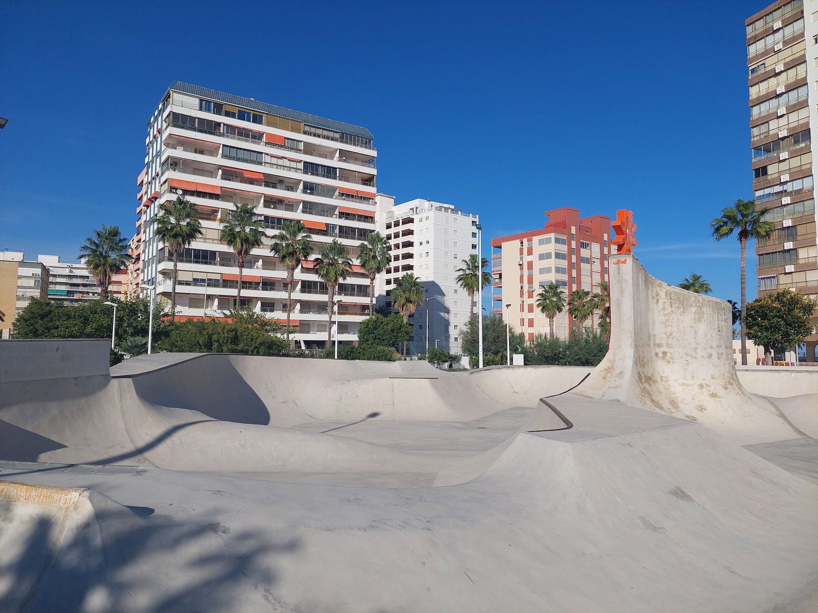 Cullera skatepark is a large concrete lighted, transition focused park near Valencia. Fun park to cruise along but difficult to skate when it's crowded. The skatepark was built by Copinramps in 2019.