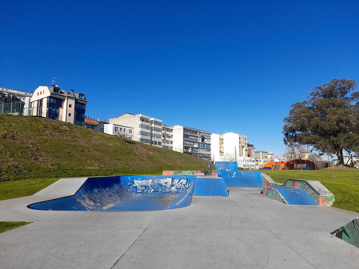 Culleredo skatepark is a concrete skatepark featuring a back and forth area with the typical bank, funbox and quarterpipe, and a also a bowl.