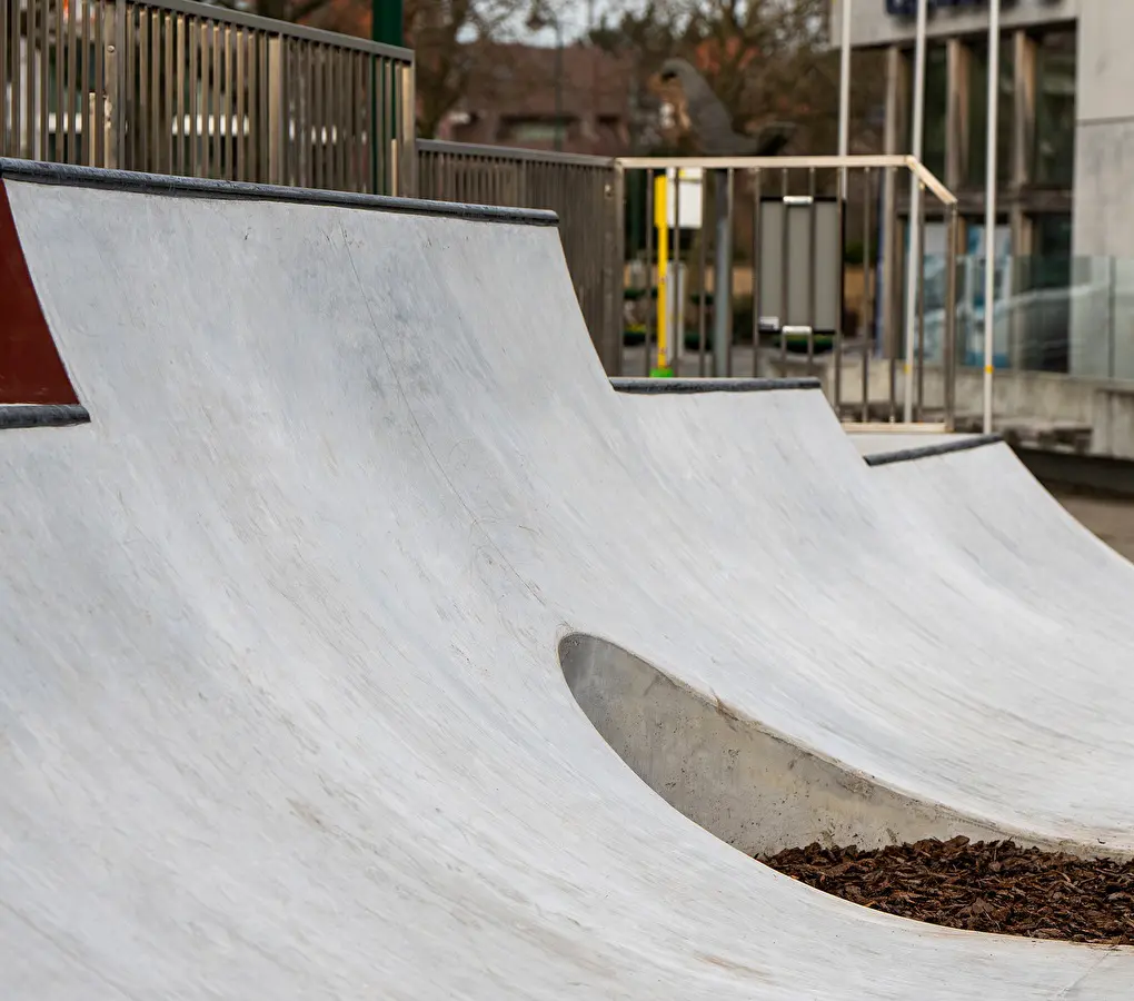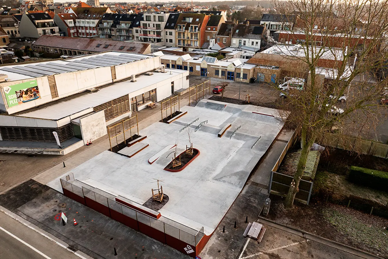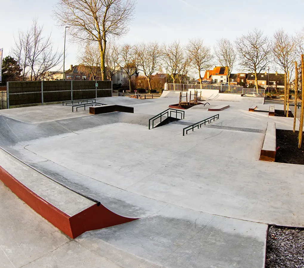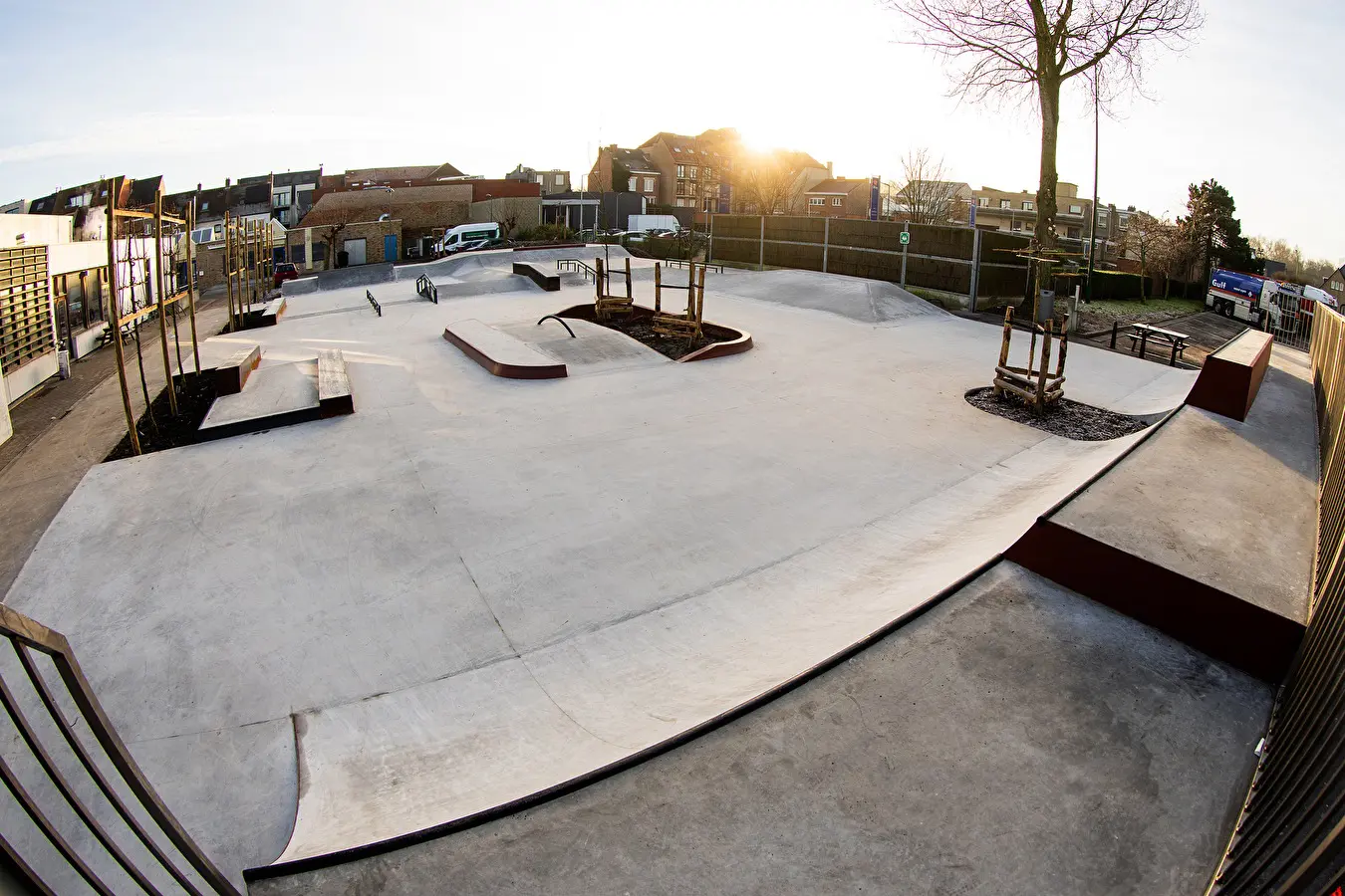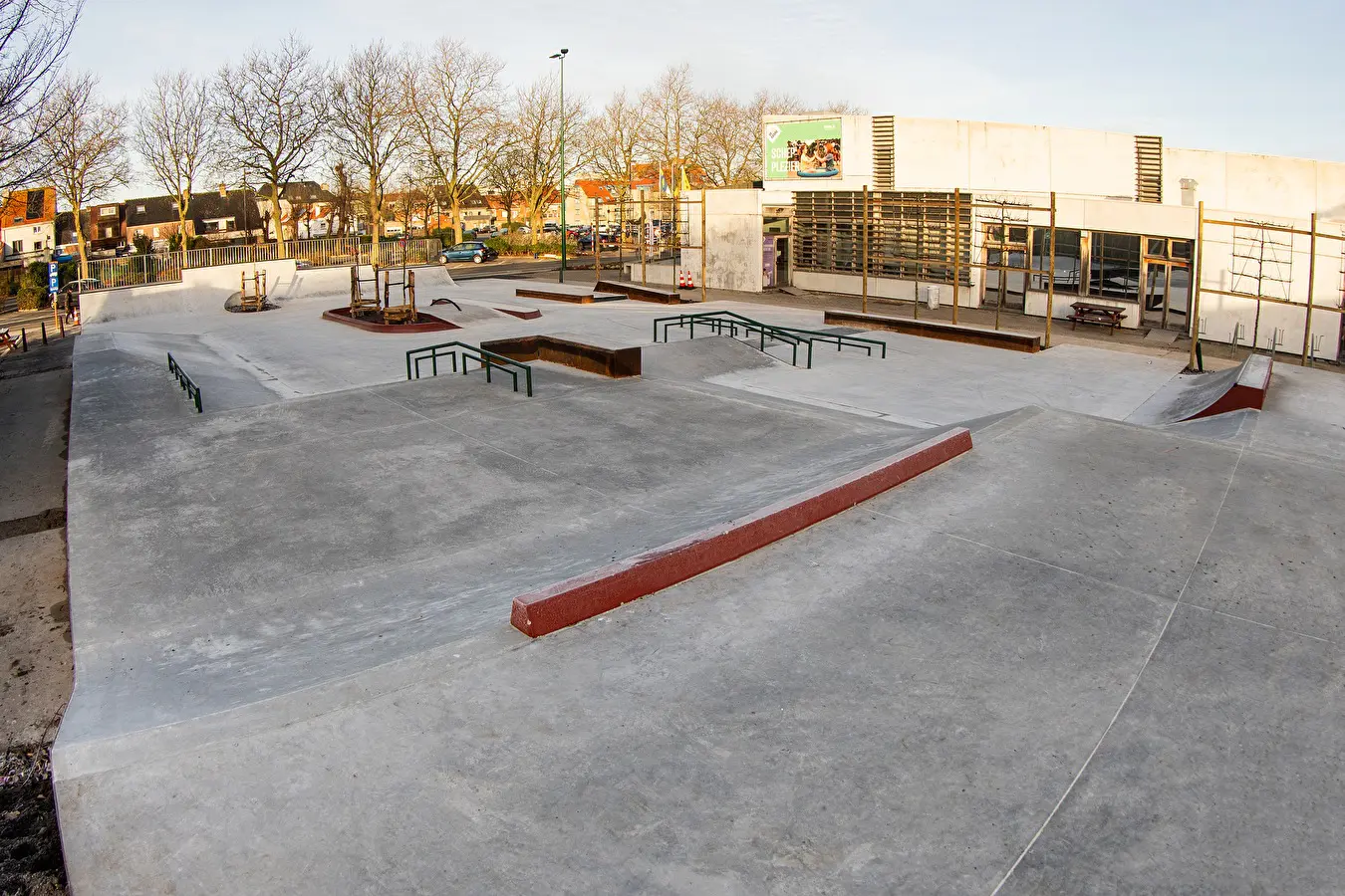 De Panne skatepark is a concrete street focused park with a nice variety of obstacles in a back and forth setup.