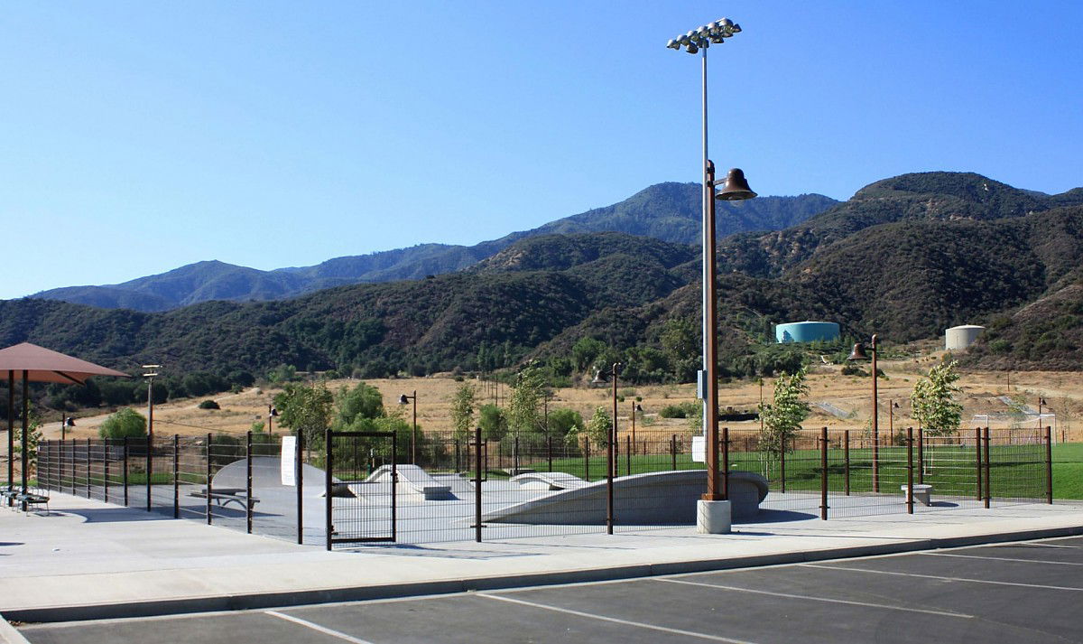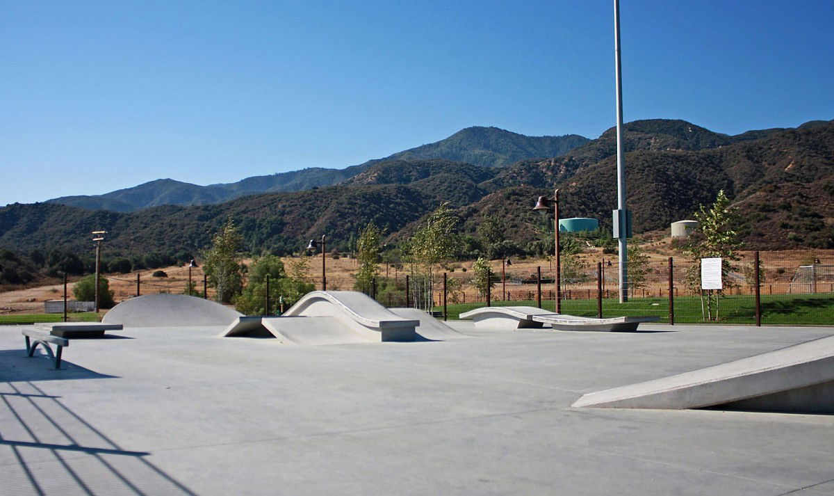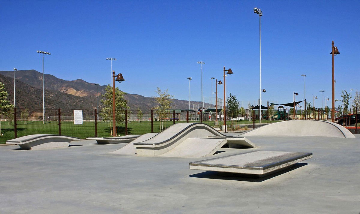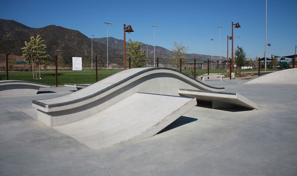 Deleo Skatepark, located at 25655 Santiago Canyon Road in Corona, California, was built in 2012 and designed by SpohnRanch, a prominent skatepark design and construction company. The park is part of the larger Deleo Regional Sports Park, which includes various recreational facilities. The skatepark features essential elements such as a hubba, manual pad, kicker, gap, ledge, and bank, all made from concrete for durability.