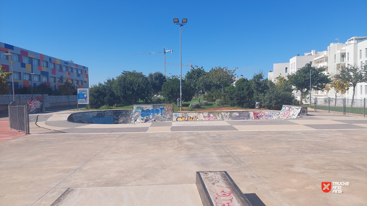 Designed by architect Daniel Yábar and constructed by Copinramps in 2015, the skatepark features a distinctive concrete bowl with two depth levels and two extensions that can also serve as ledges.