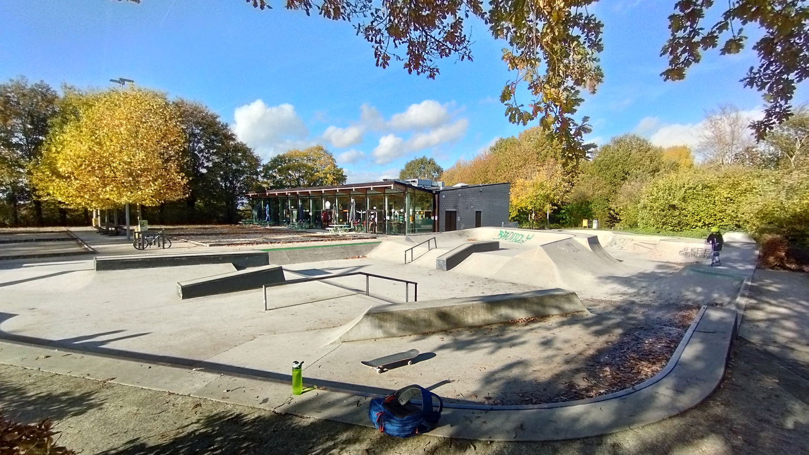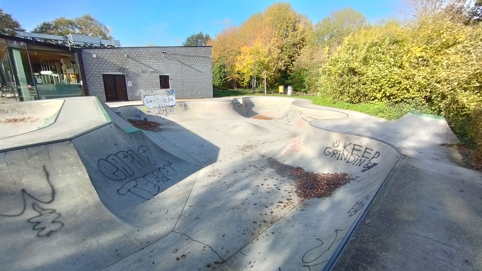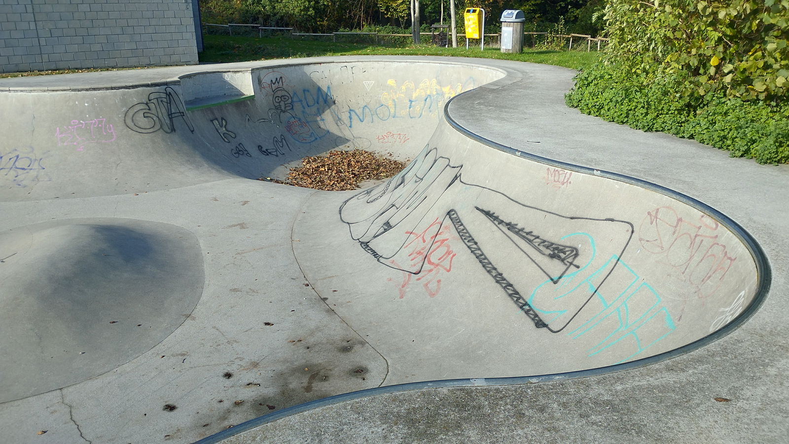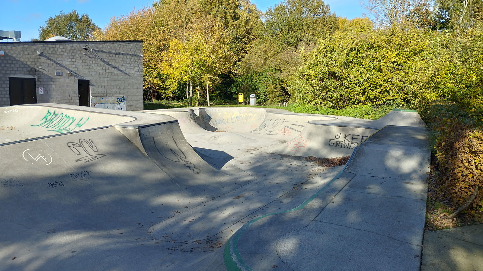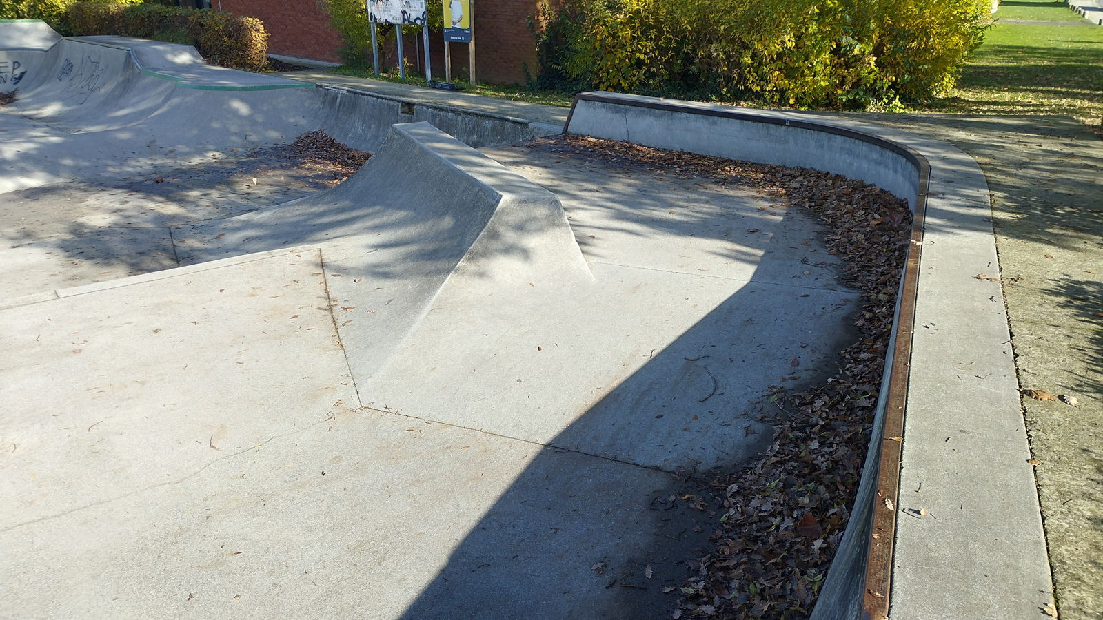 Dilbeek skatepark is a concrete park made up of a snakerun type bowl and a small street area.