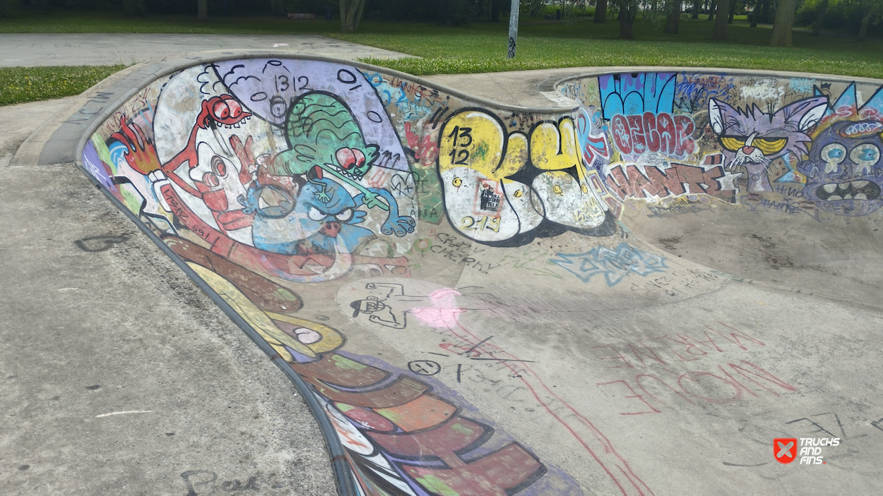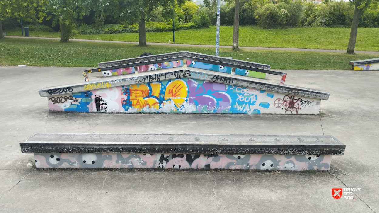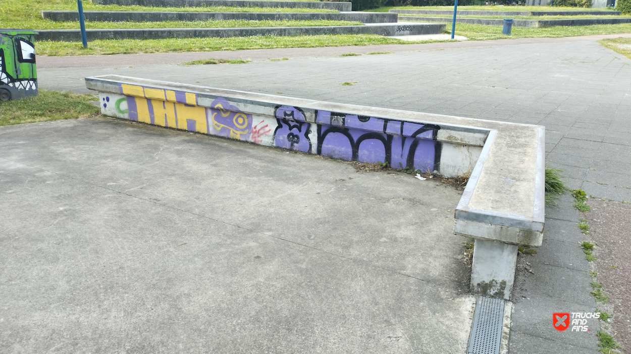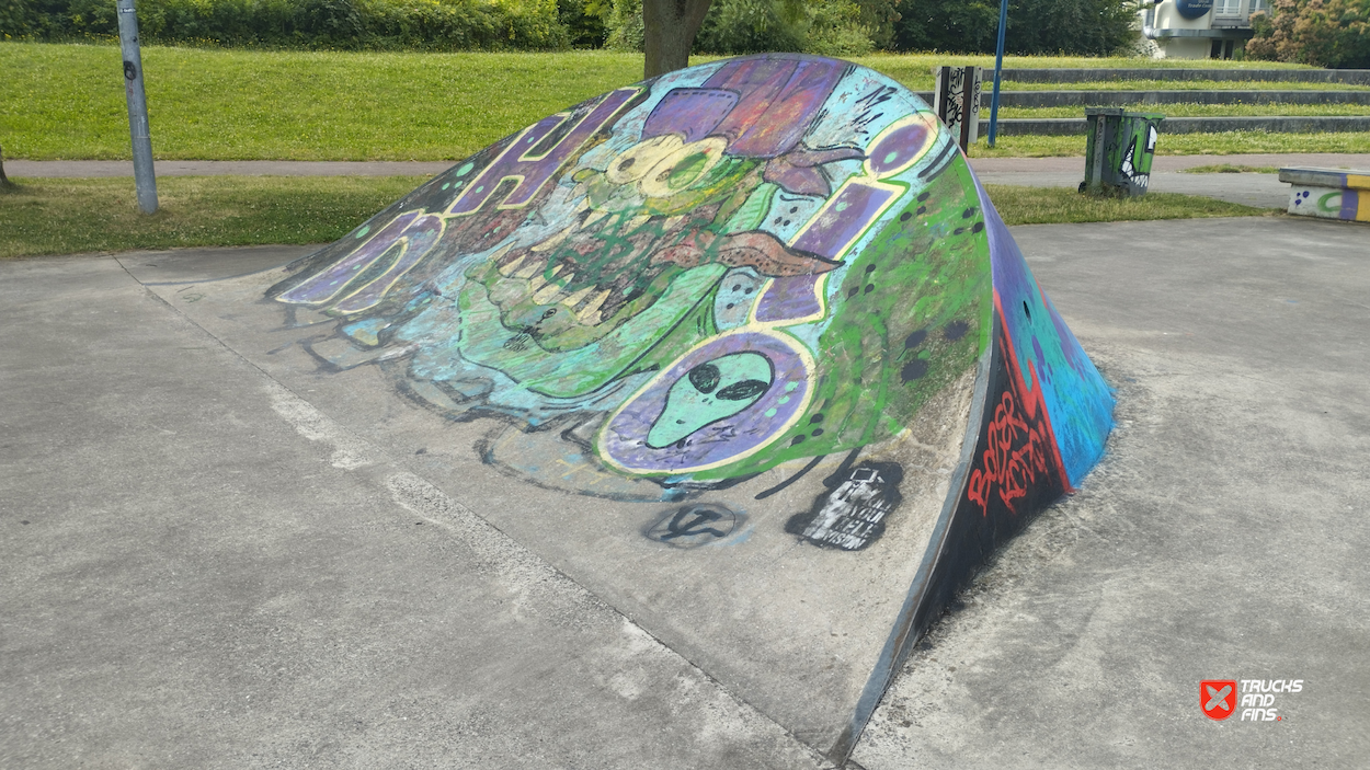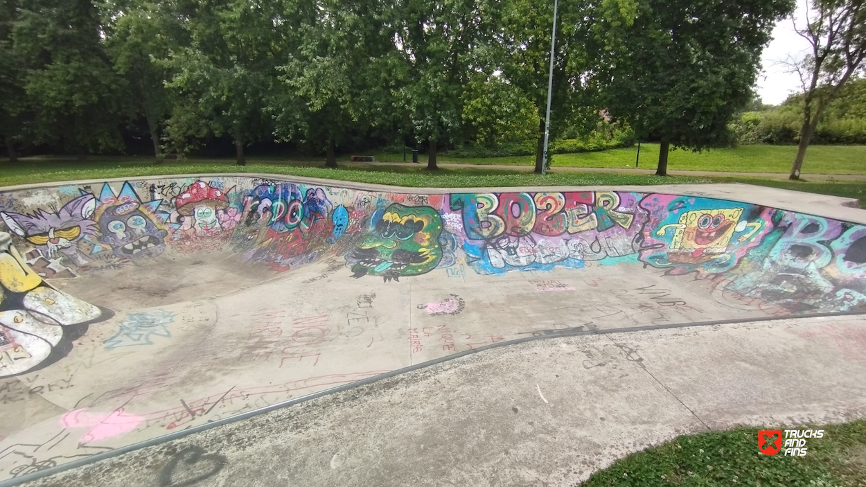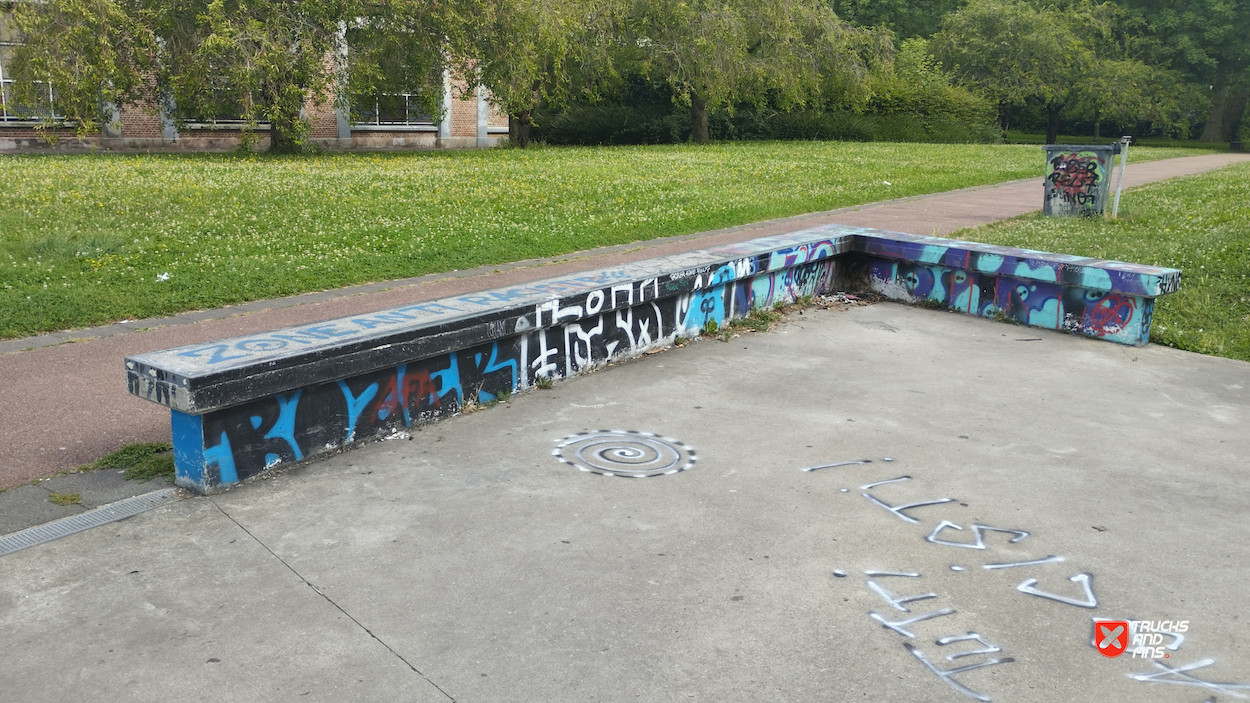 Douai skatepark is a concrete park featuring a bowl and street section. The skatepark has lights.