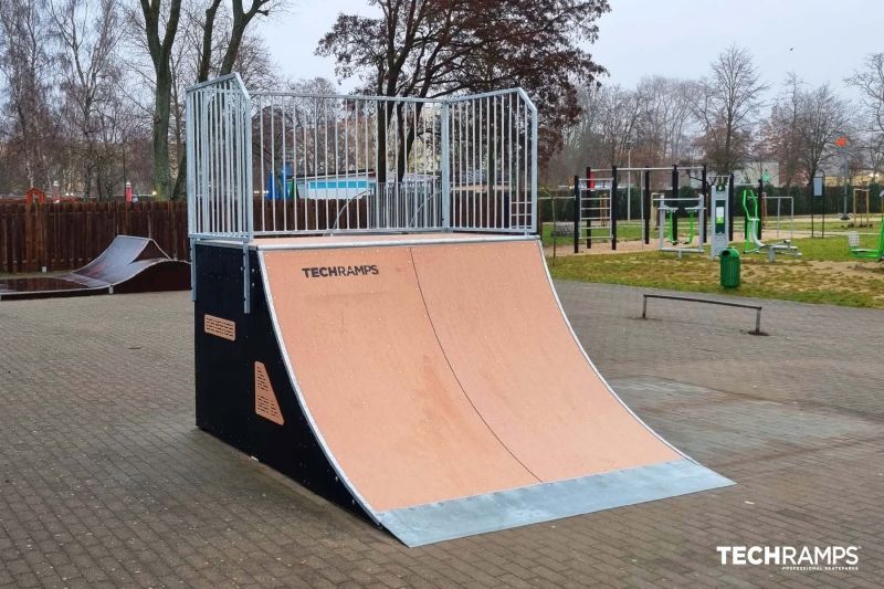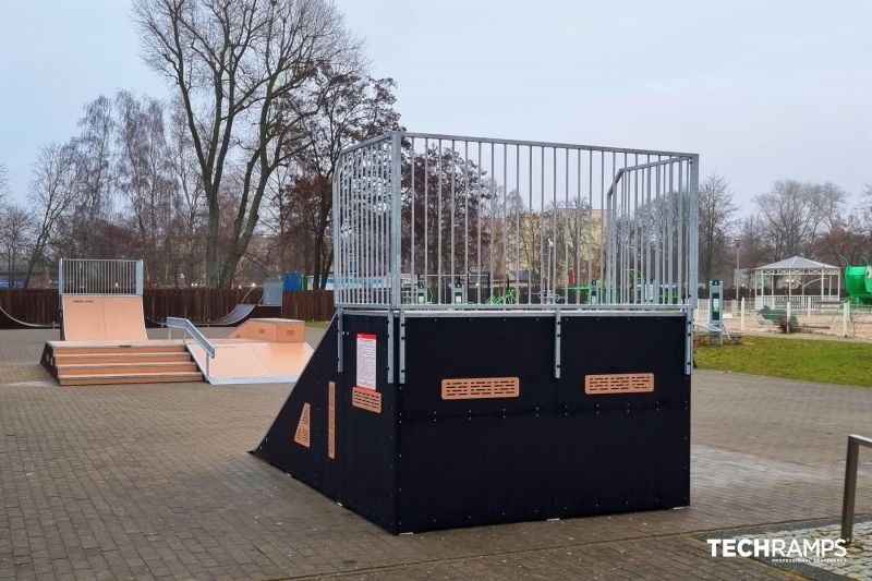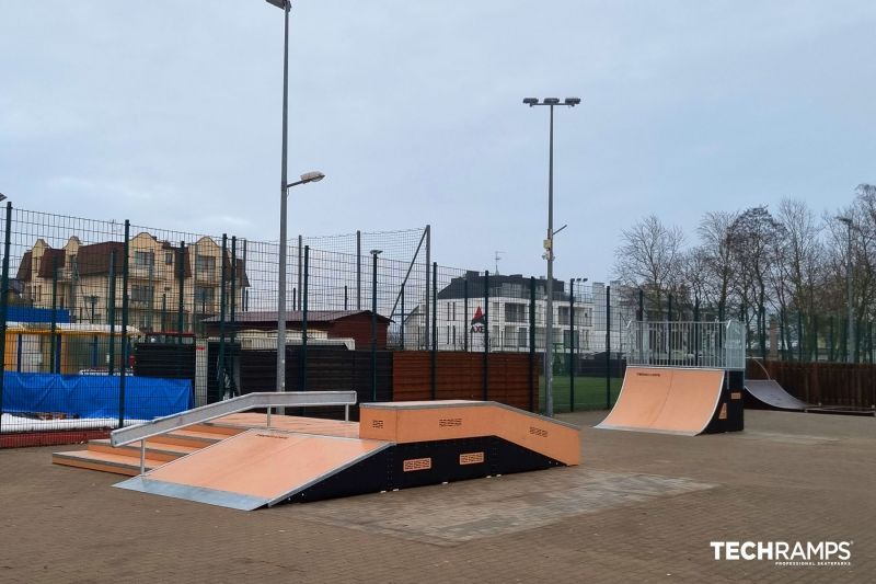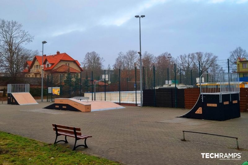 Dziwnów skatepark is a small park with a miniramp and several basic obstacles in a back and forth setup. The skatepark was built by Techramps.