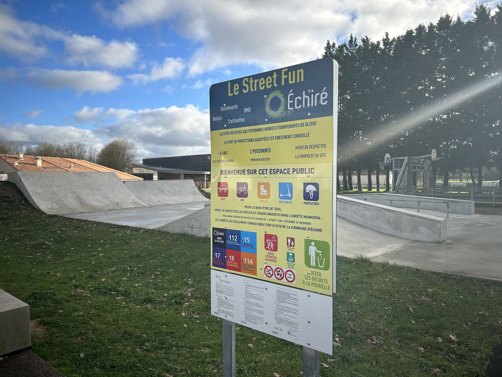 Échiré skatepark is a concrete street focused park with a nice variety of obstacles.