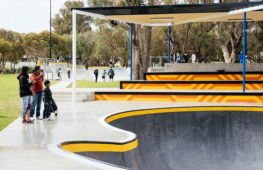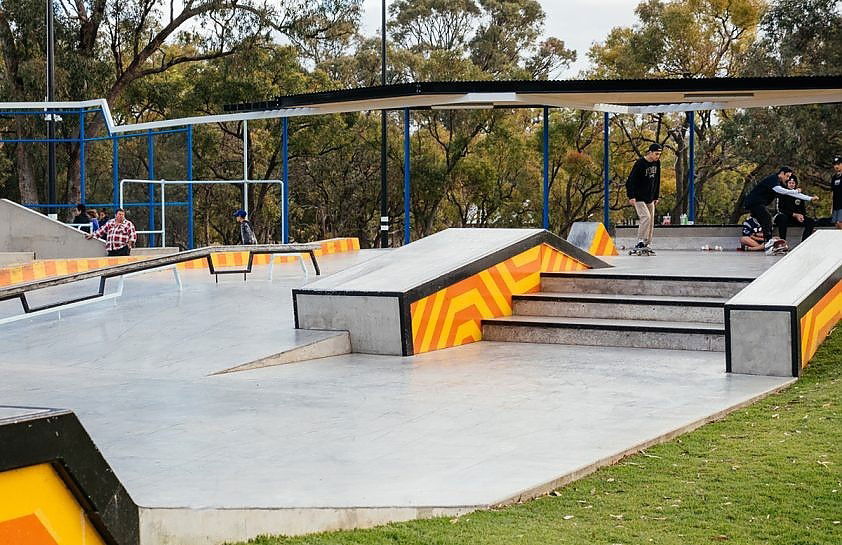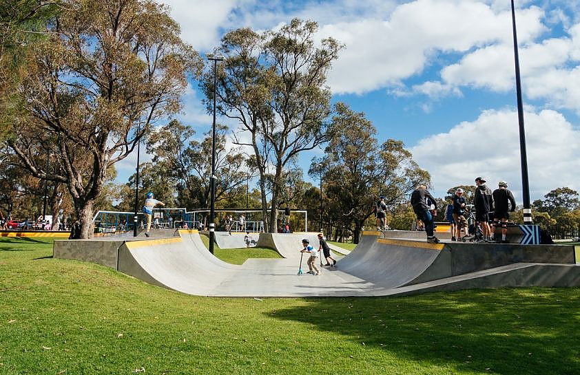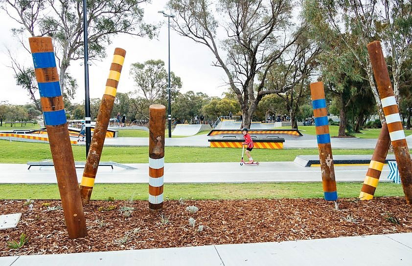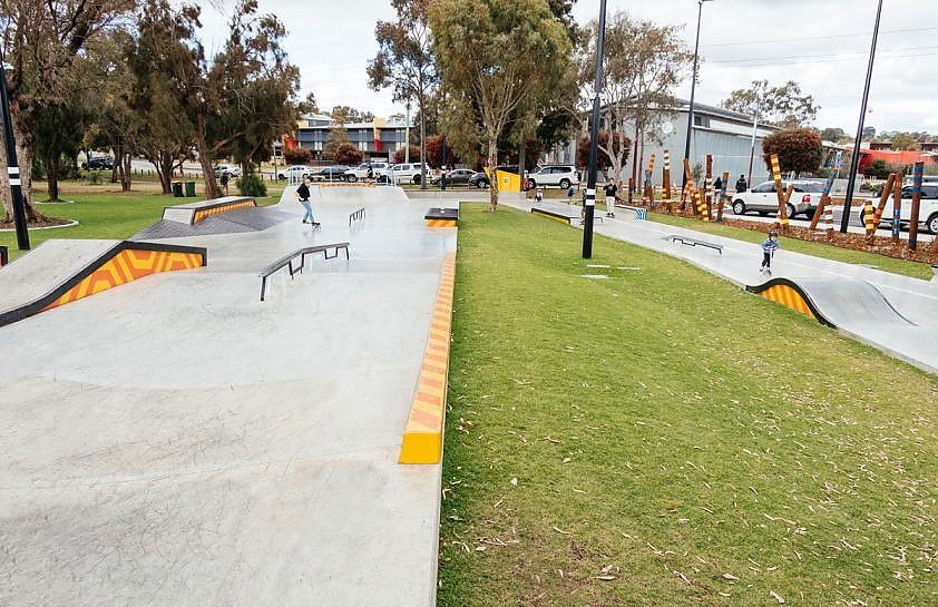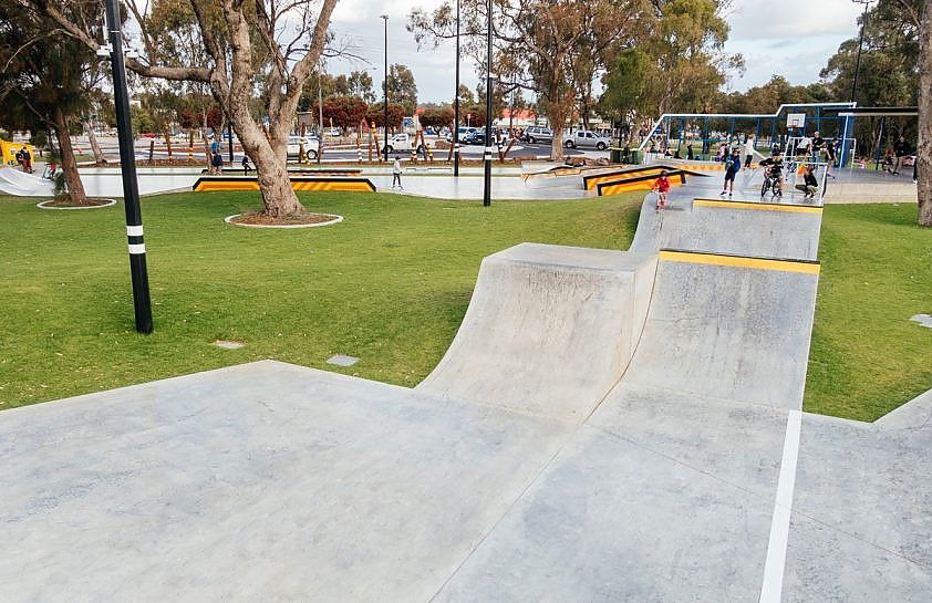 The Edge Skatepark, located at Calista Oval in Kwinana, is one of Western Australia's largest skateparks, covering 1,800 square meters. It was built at a cost of $1.5 million and officially opened in 2018. The park was designed with input from the local community, including skaters, parents, and a dedicated Skatepark Reference Group. It was developed by the City of Kwinana, reflecting the area's industrial heritage through its design, which incorporates metal textures and industrial-inspired elements.