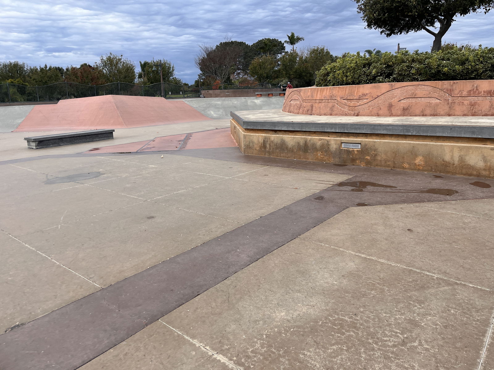 Encinitas skatepark, also known as Poods park, is a concrete park featuring a bowl and street area.