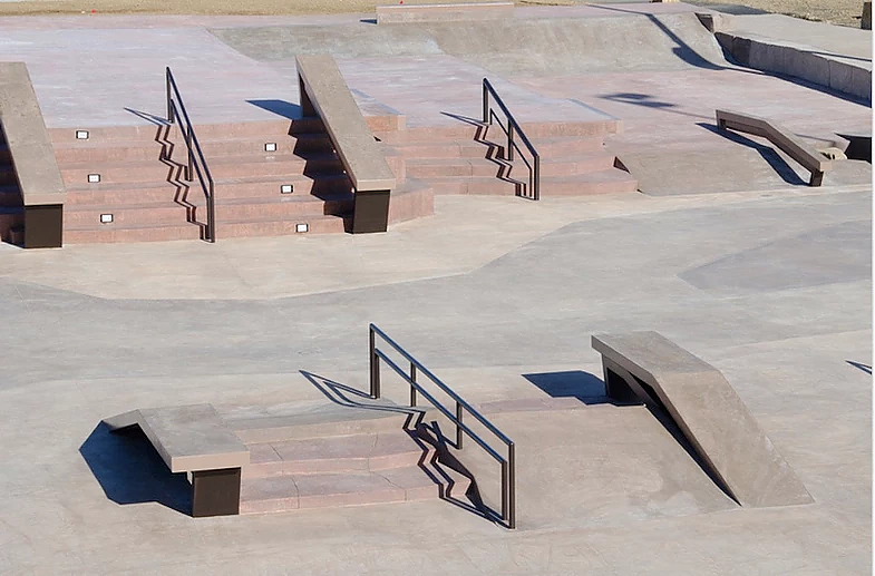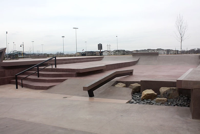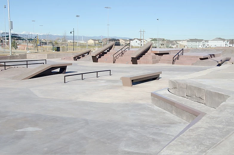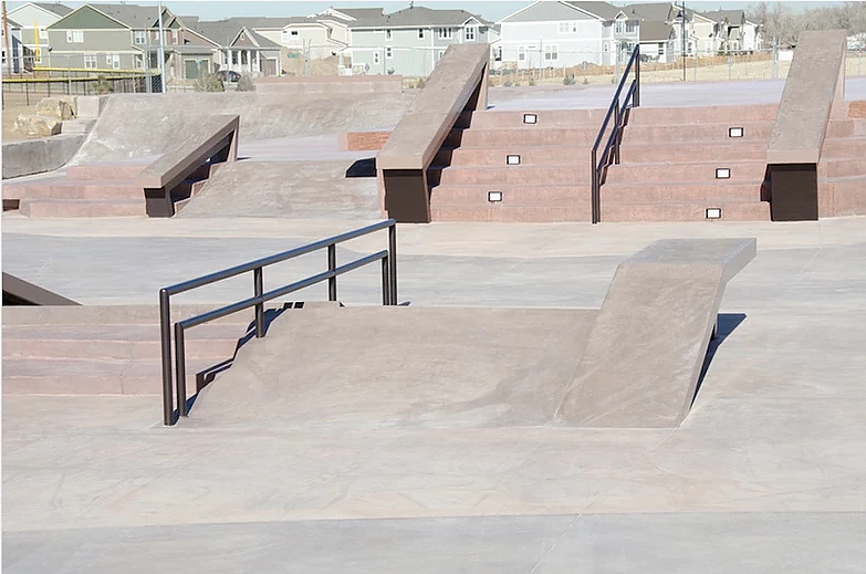 The park is designed to cater to skateboarders of all levels, with a variety of street-style elements like ledges, rails, stair sets, and banks. Its design also includes smooth transitions to make it accessible for beginners while still offering challenges for more advanced skaters. One of the park’s most distinctive features is its blend of these SLS-donated elements with natural rock accents, reflecting the Colorado environment and setting the park apart from other skateparks in the area.