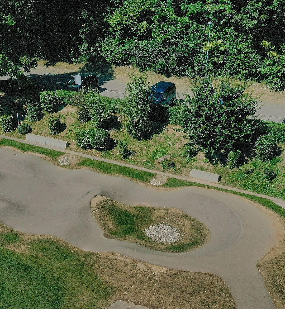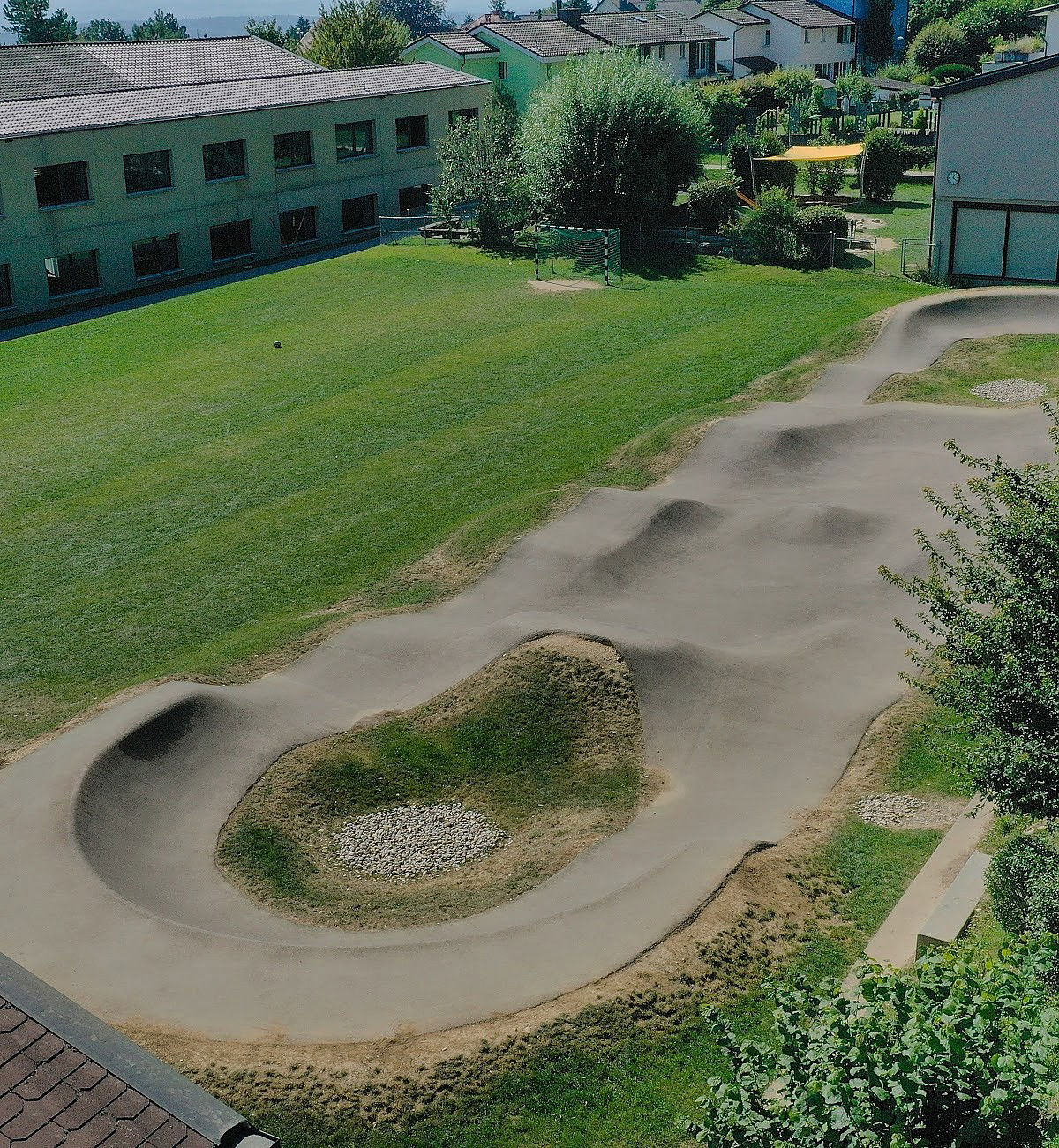 Evilard pumptrack is an asphalt track built by Flying metal.