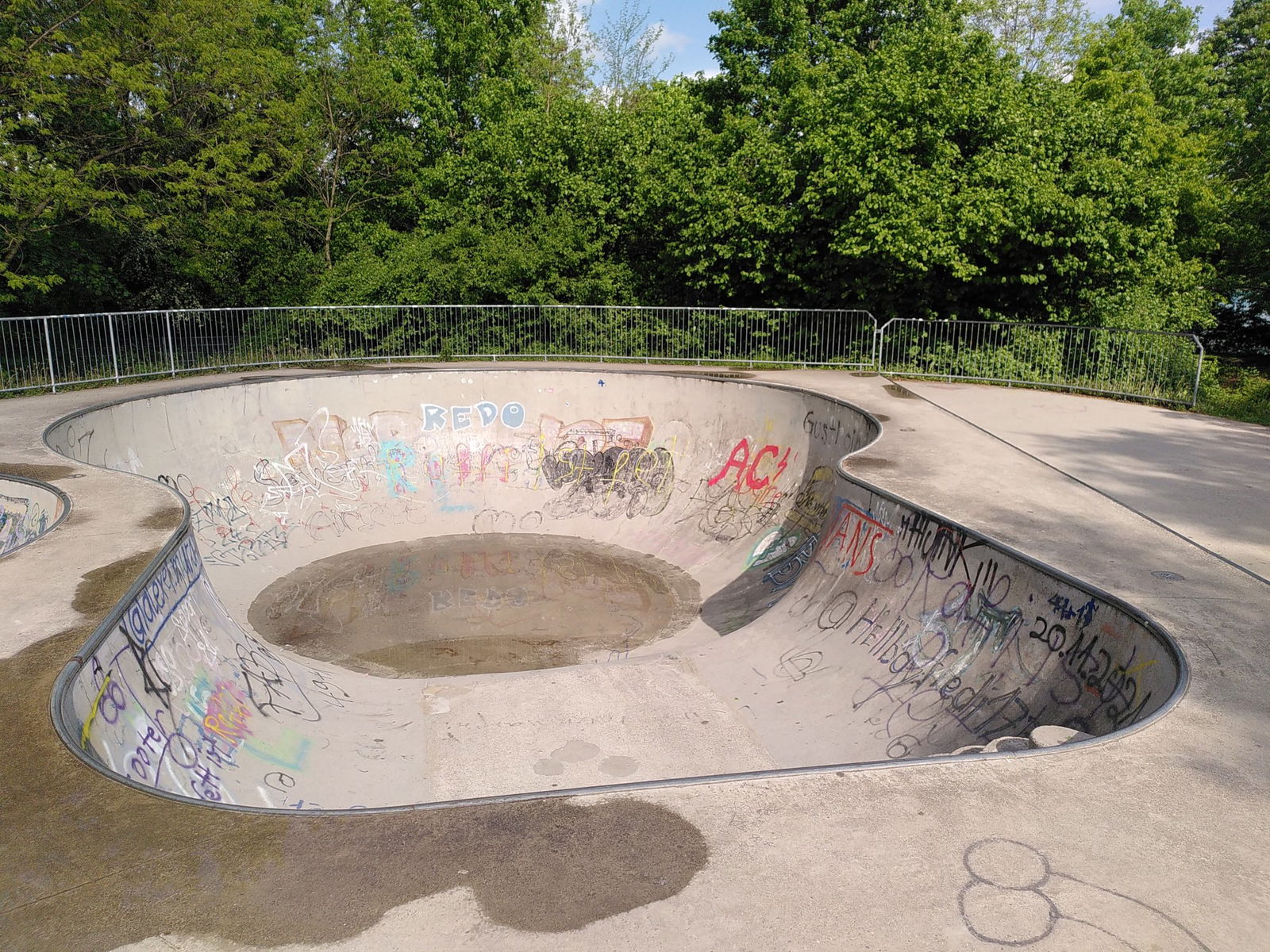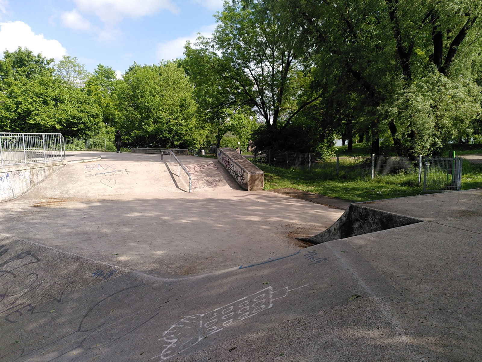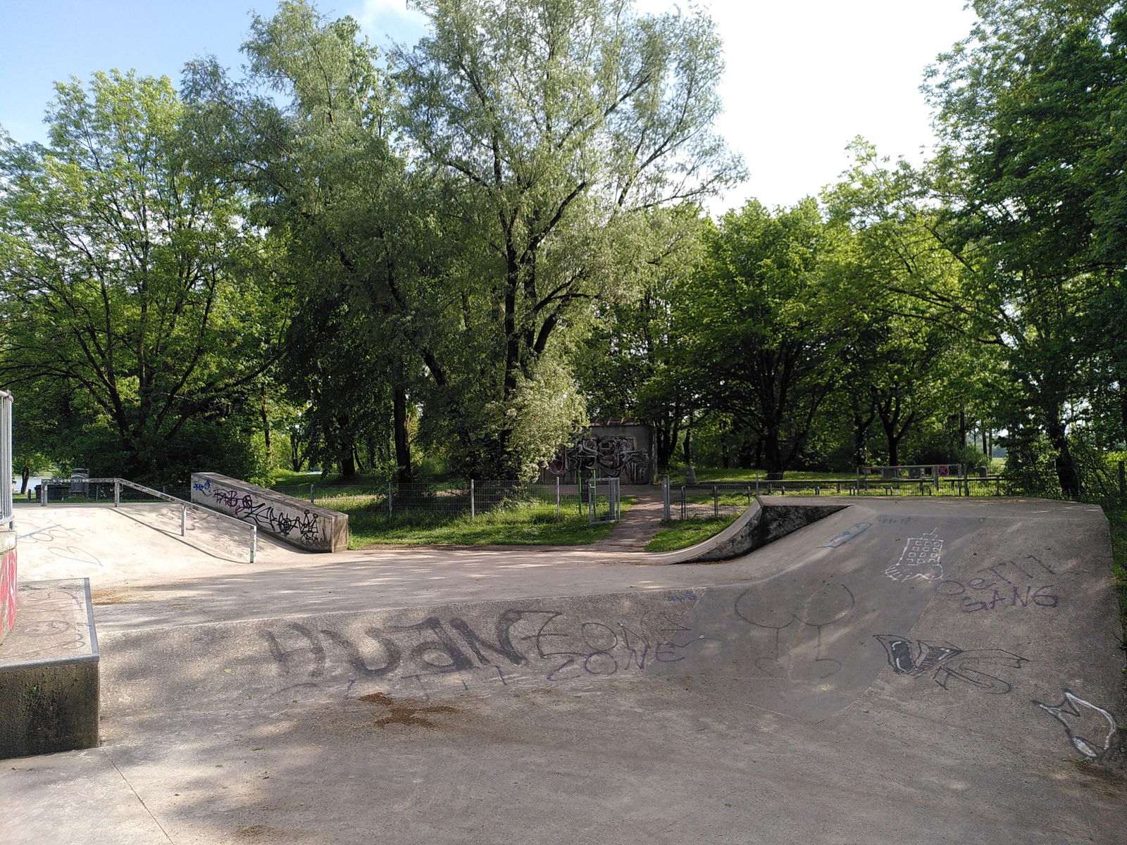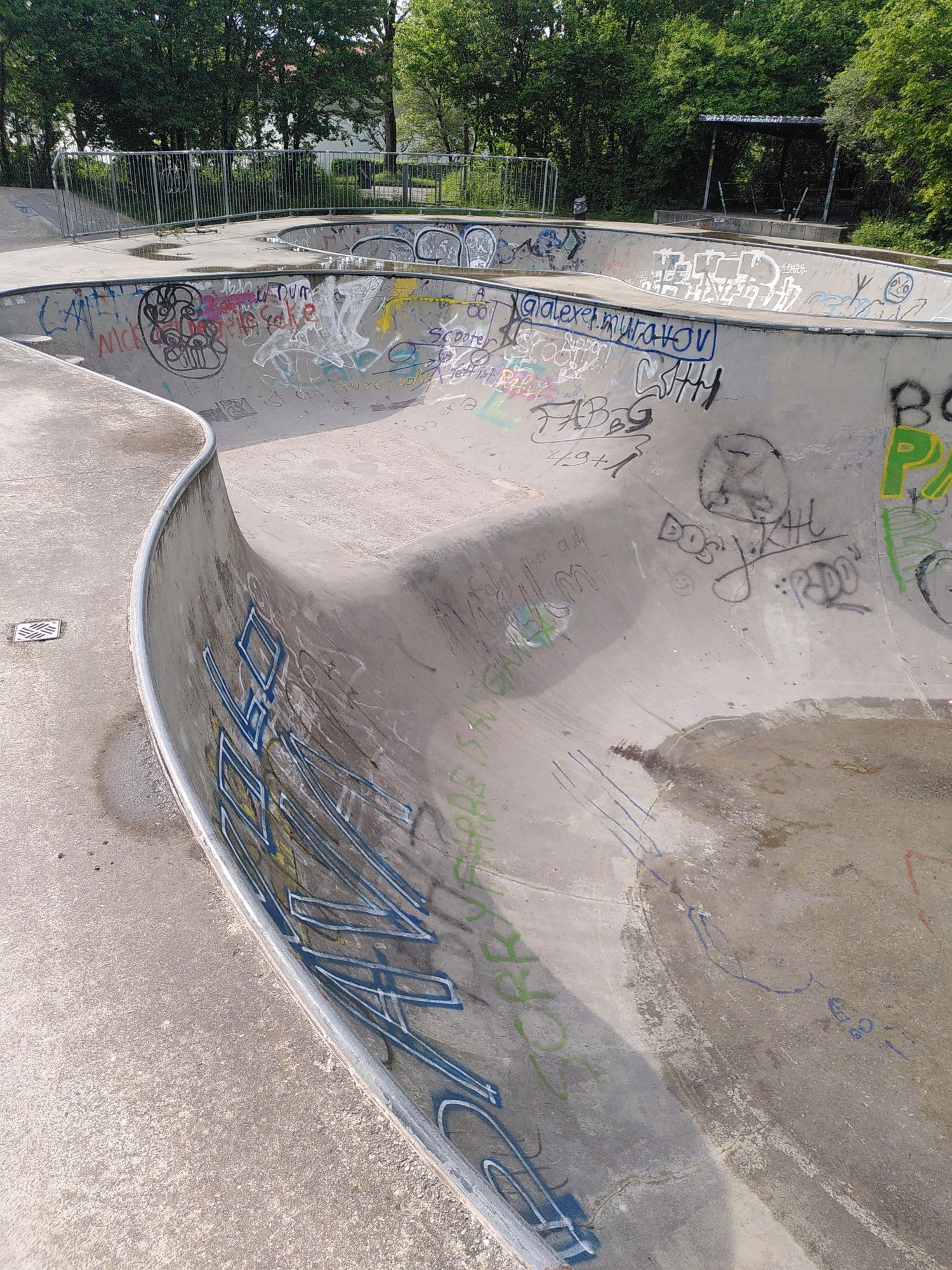 Fasaneriesee Skatepark is a 970 square meter concrete park made up of two differently shaped bowls surrounded by a street area. One bowl is more beginner friendly while the other one is very deep and goes slightly over-vert. Both bowls include a waterfall. The bowls are accompanied by a nice litte street section. The skatepark was built in 2007.