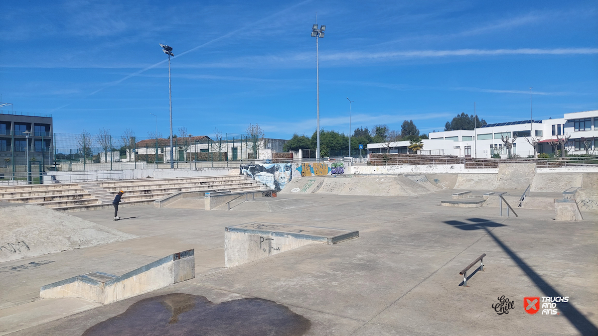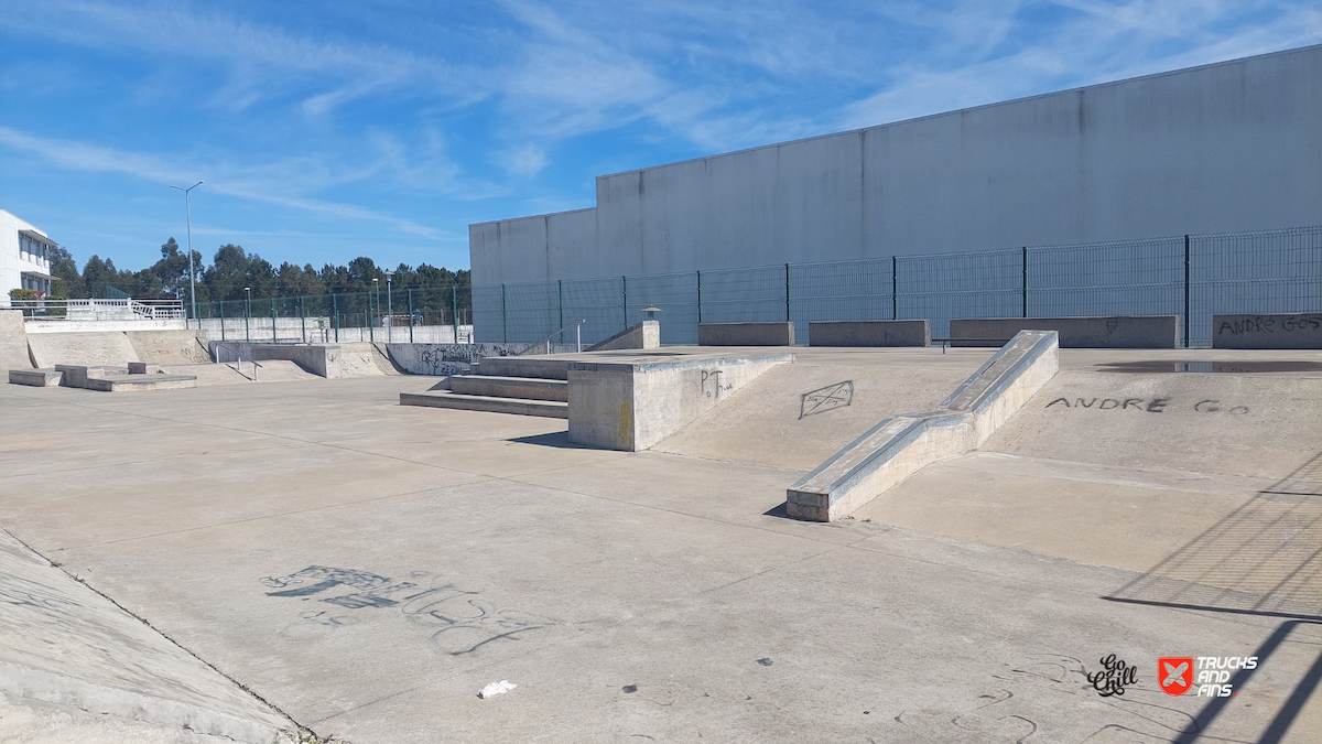 The Ferreira do Zêzere Skatepark, located in the Santarém district of Portugal, offers a mix of street and bowl features, catering to skaters of different skill levels. It is a concrete park with a variety of elements, including a roll-in, quarter pipes, a jump box, manual pads, ledges, stairs, a handrail, and a bowl, making it a versatile spot for both street and transition skating. Built in recent years, this skatepark was designed with the community in mind, focusing on providing a space for local skaters to practice and improve their skills. The park's construction includes thoughtful details like hubbas and flatrails to keep it challenging for experienced skaters, while maintaining accessible features for beginners.