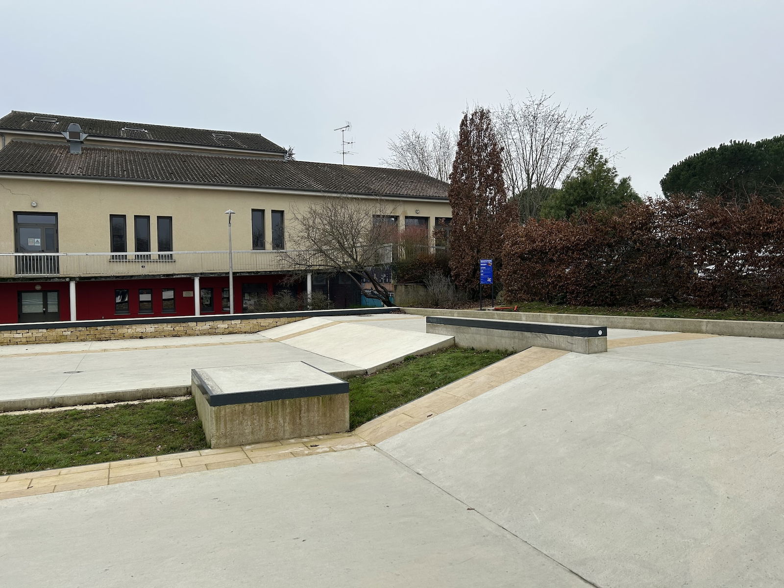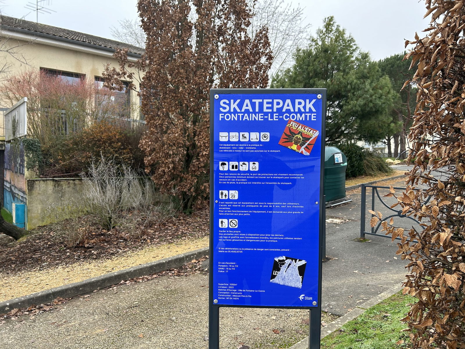 Fontaine-le-Comte skatepark features a miniramp, jumpbox and several street obstacles.