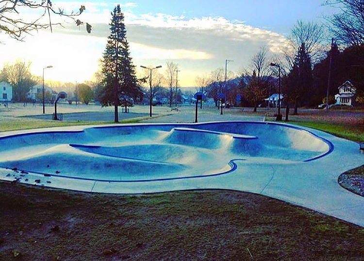 The Frankfort Skatepark in Frankfort, Michigan, was designed and built by Evergreen Skateparks and officially opened in 2015. This 6,000-square-foot outdoor concrete skatepark is located in Market Square Park. It features a large open bowl, smaller bowls, quarter pipes, and roll-ins, making it a great place for skaters to practice transition-style skating. However, street skaters might find fewer features suited to their style.