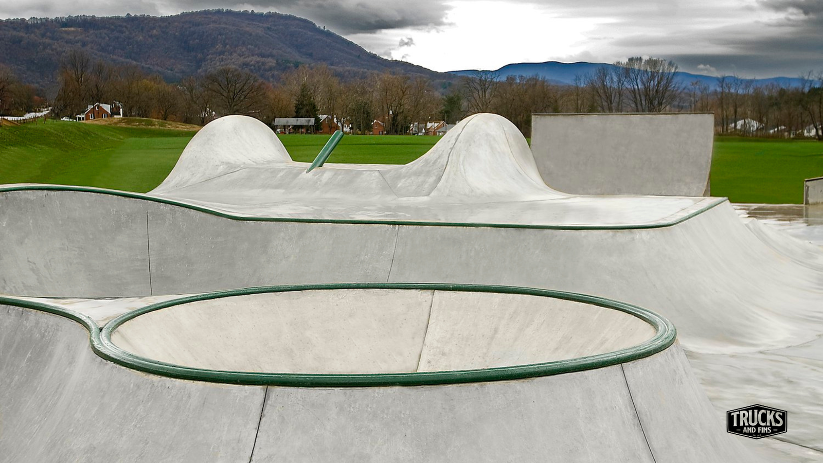 Front Royal skatepark is a concrete park featuring a bowl with stone coping, a large open bowl and a street section. The Skatepark Project helped fund this skatepark in 2004.