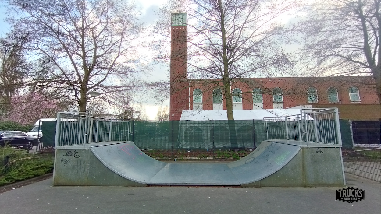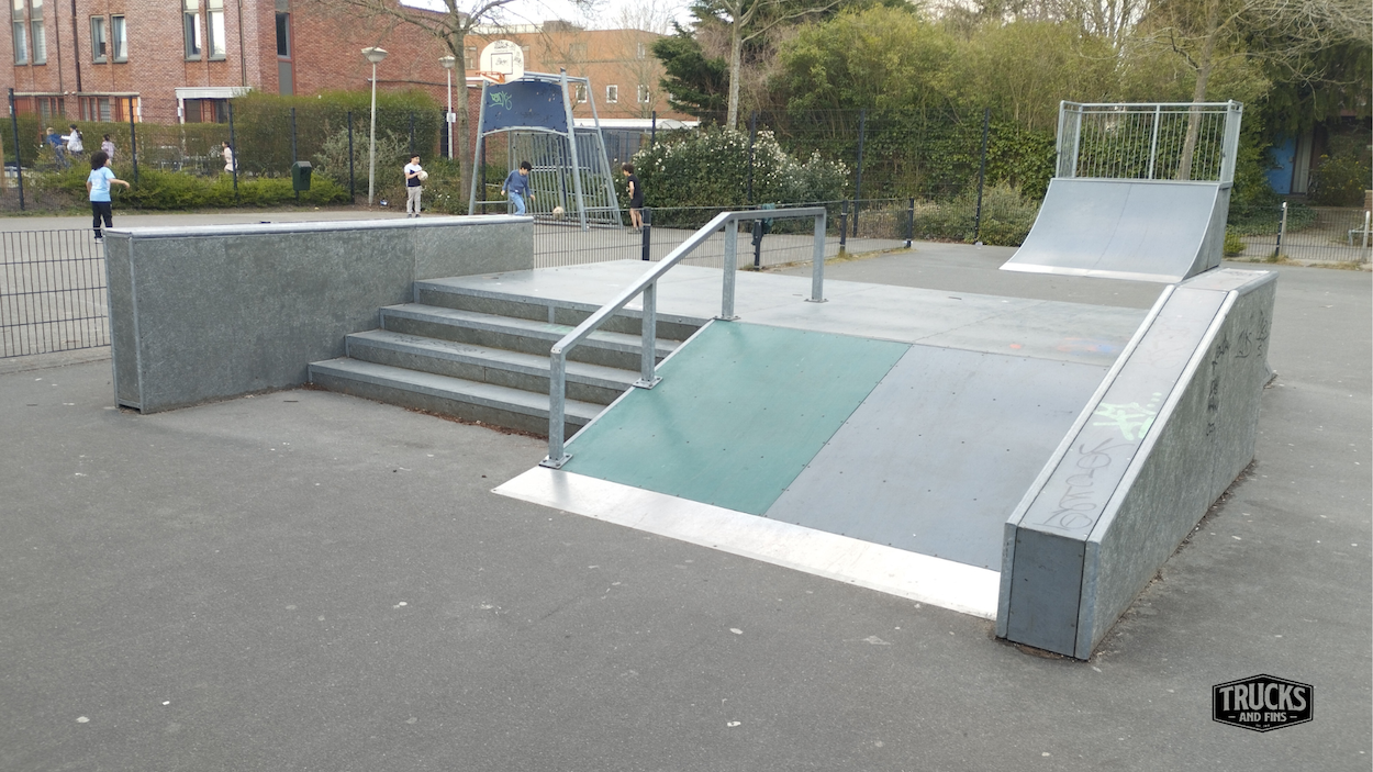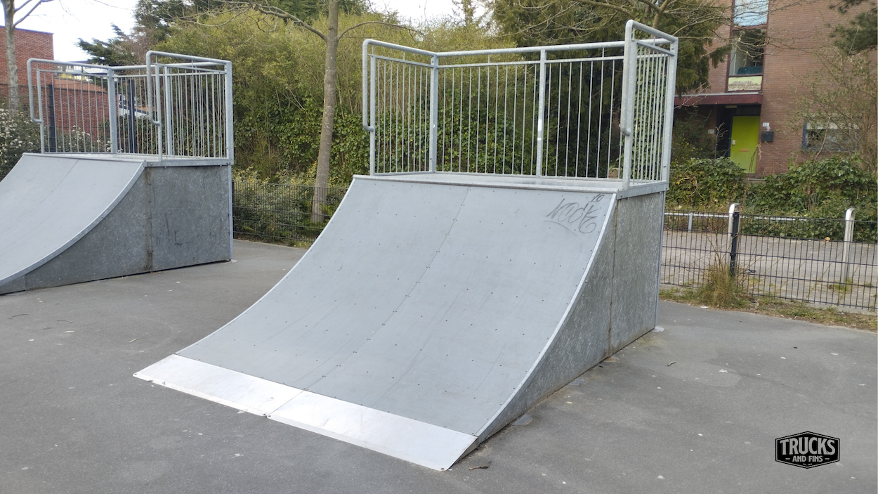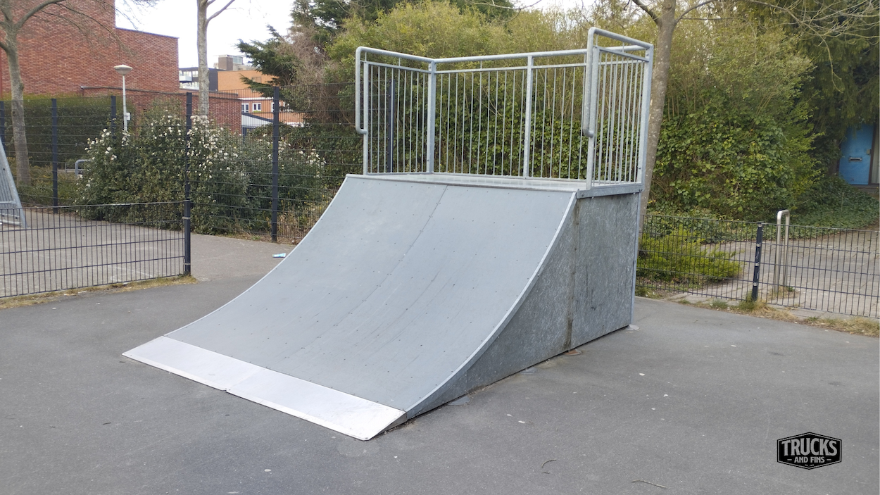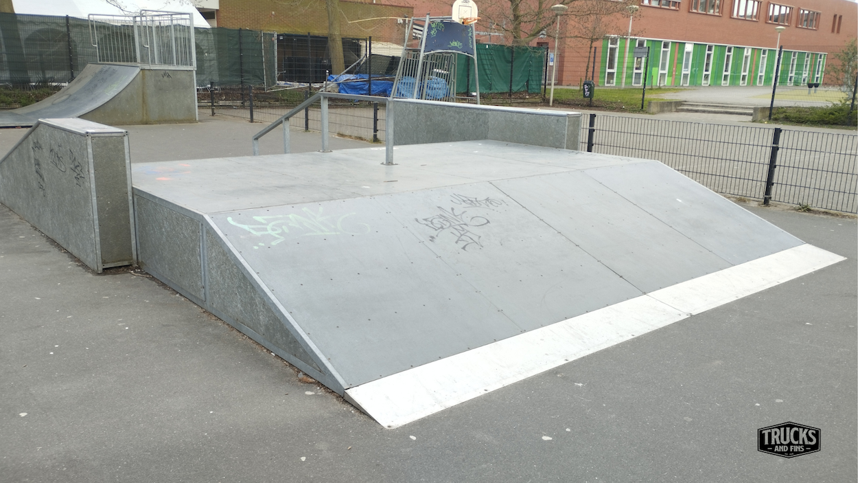 Gaardes skatepark features a miniramp, funbox, quarter and bank. The skatepark is located next to the Hofstede college.