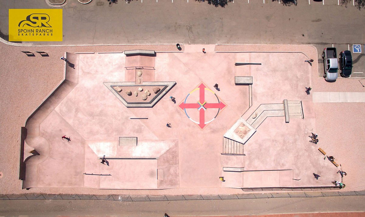 Gallup Skatepark, located in Gallup, New Mexico, officially opened in 2018 and was designed by SpohnRanch, a well-known skatepark design and construction firm. This 10,000-square-foot skatepark is a street-focused park but also incorporates some transition elements to offer a variety of experiences for skaters, BMX riders, inline skaters, and scooters.