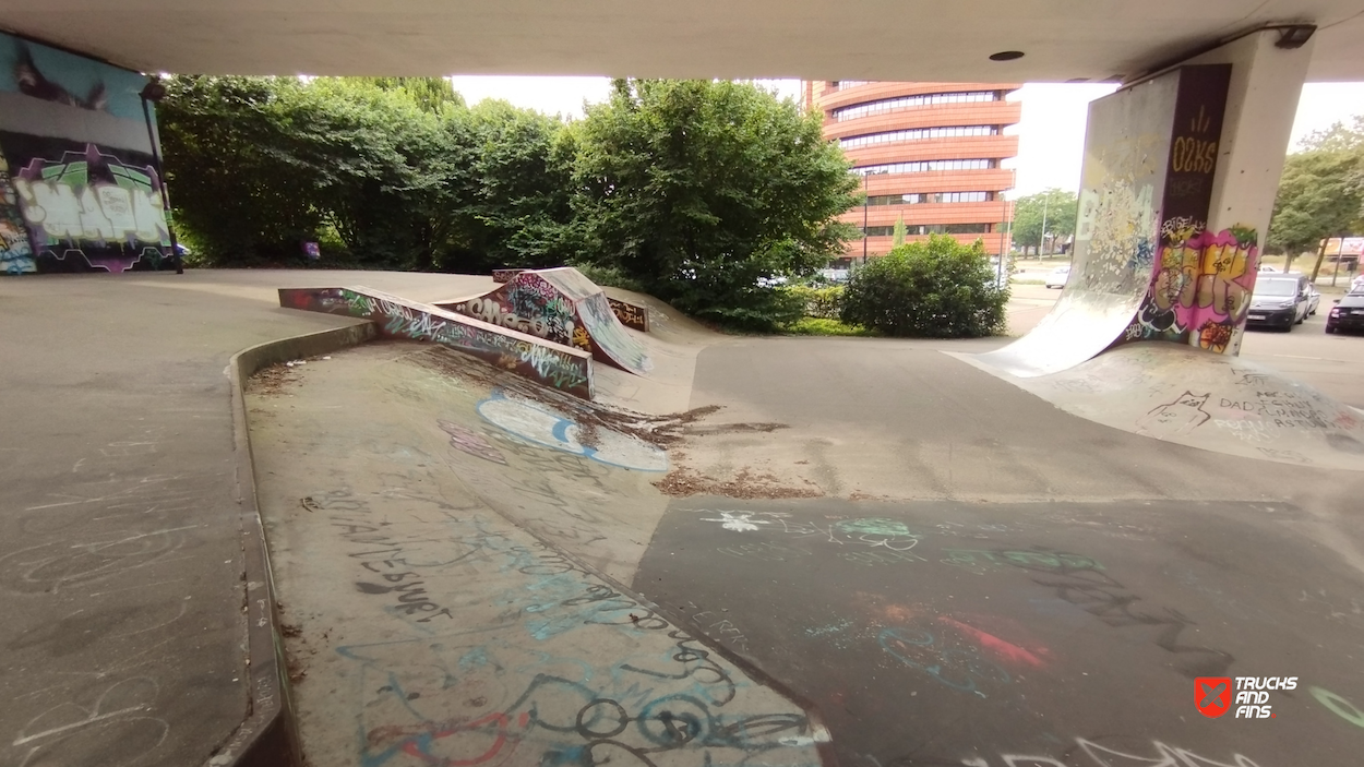 Genk skatepark is a concrete skatepark located under the N76 bridge.