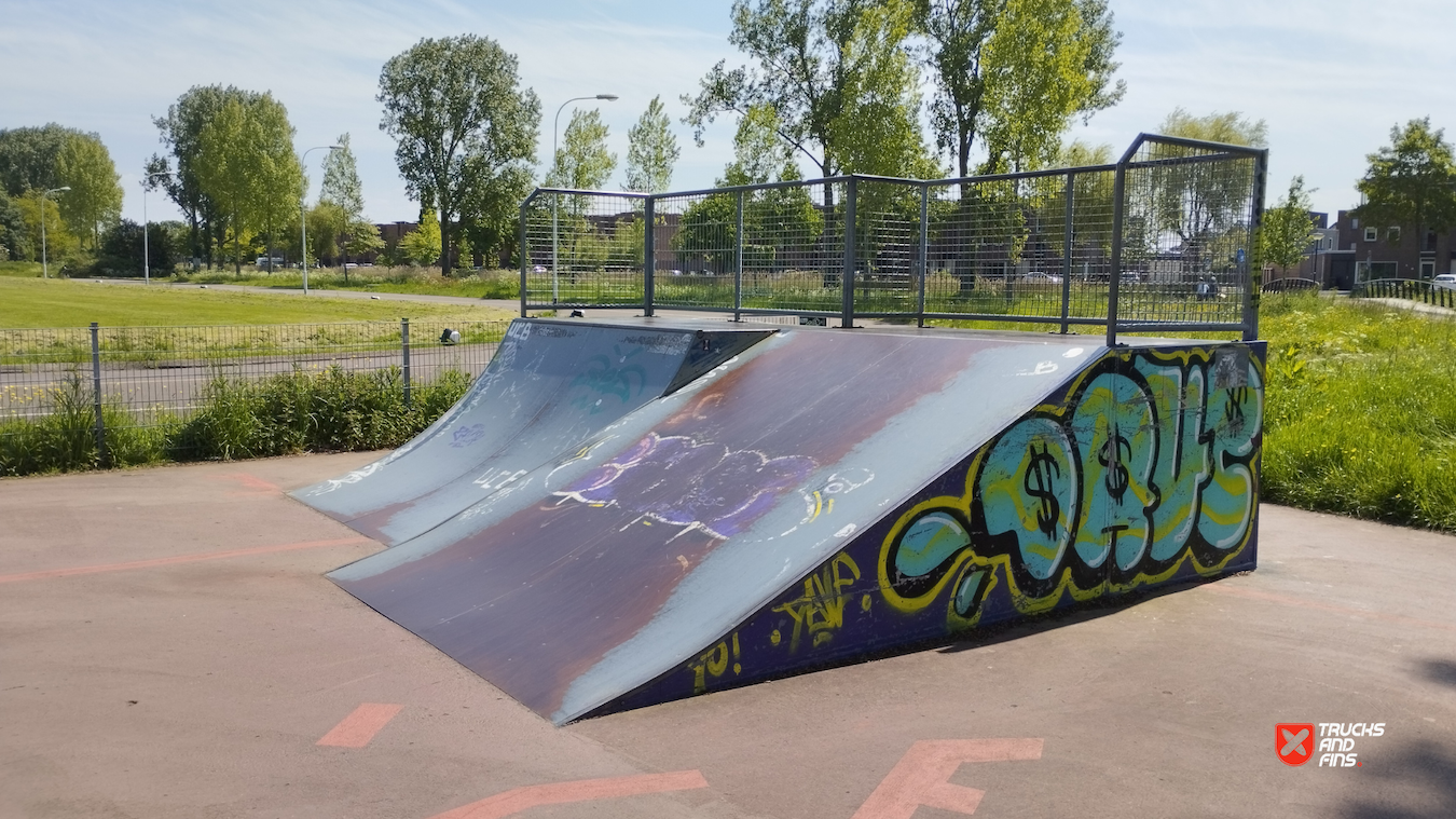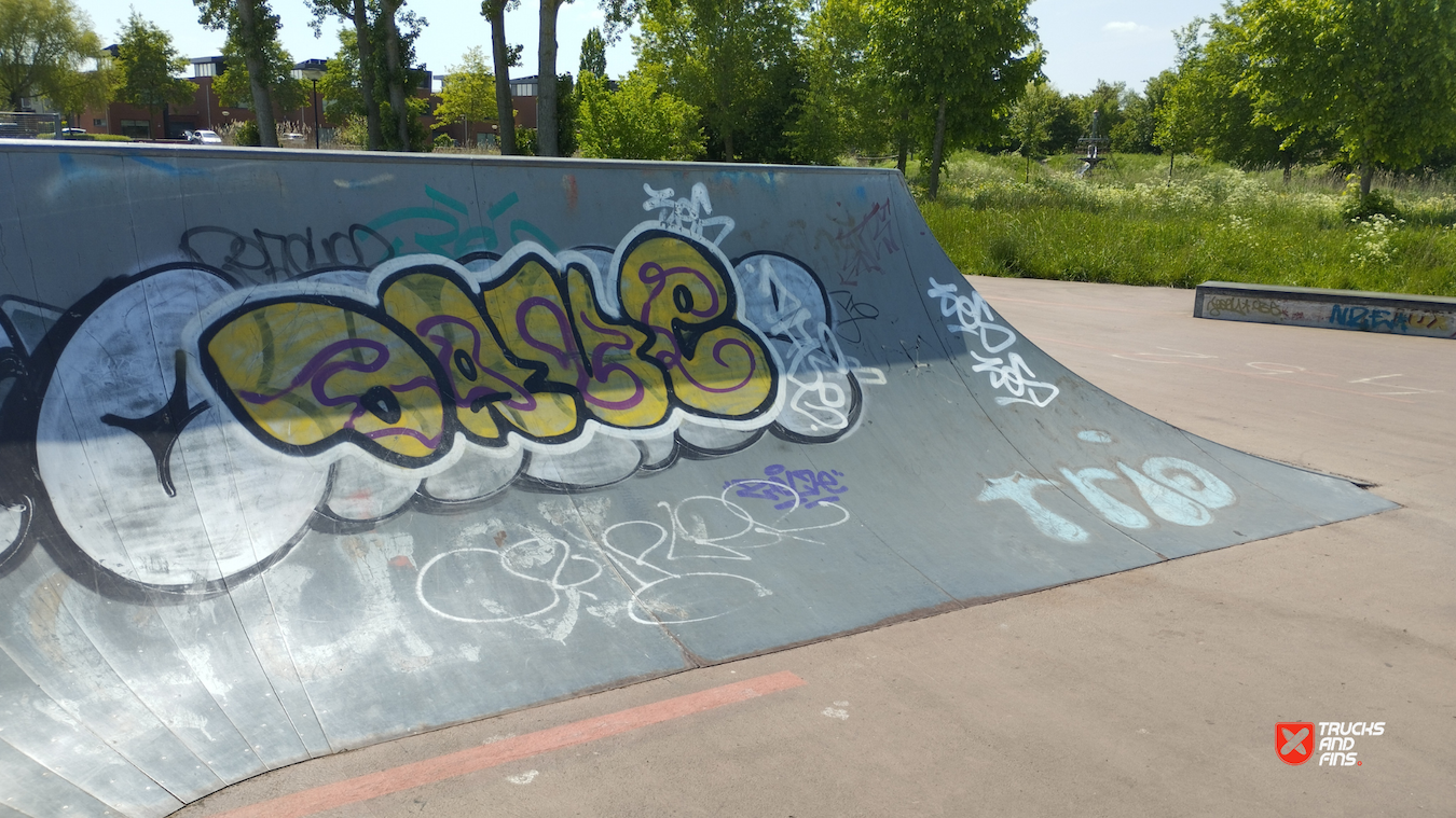 Goes-Zuid Skatepark features an open bowl and several basic skateboarding obstacles.