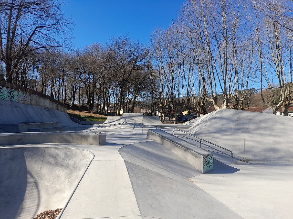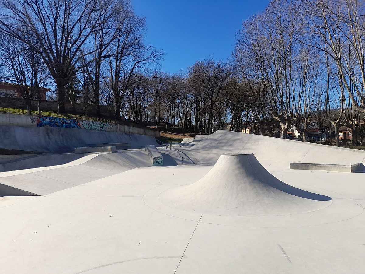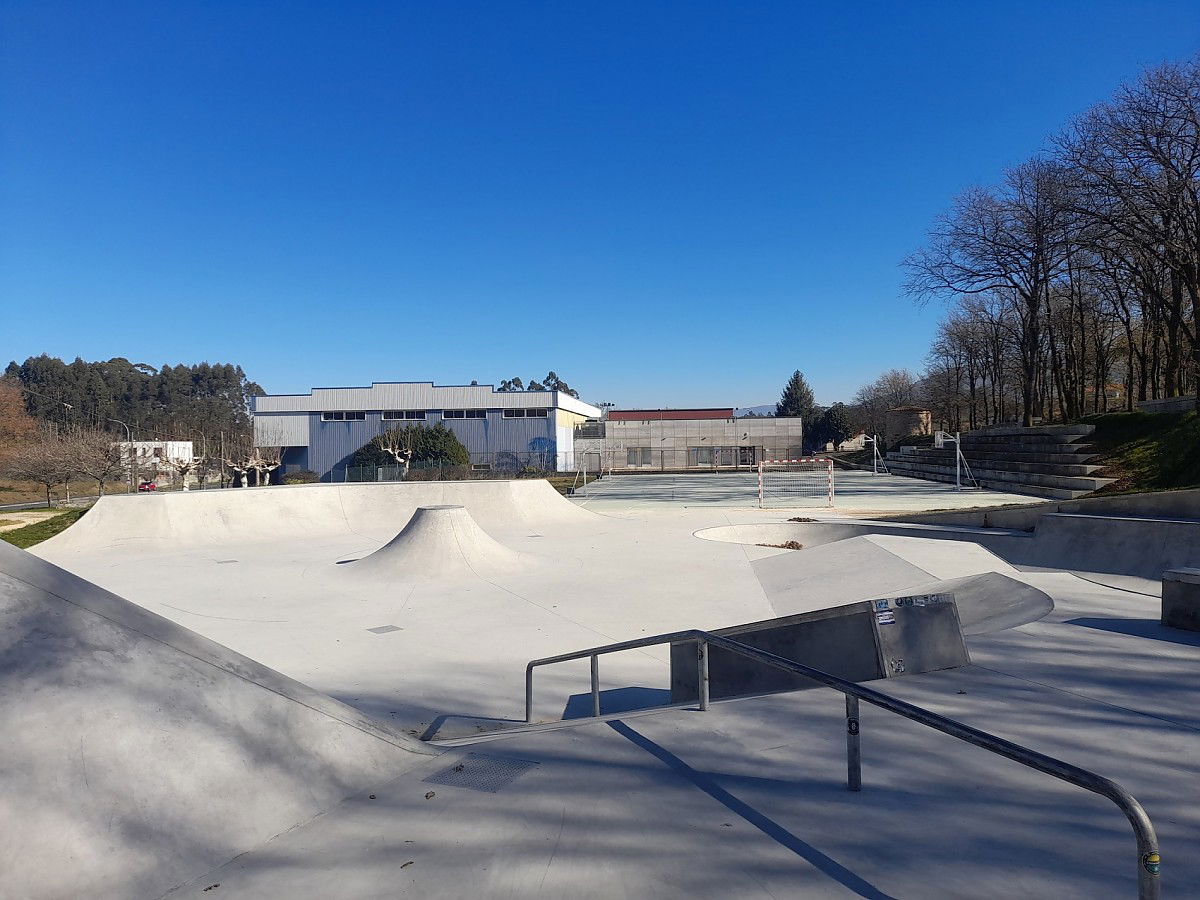Goián skatepark is a concrete park featuring a bowl and a large transition area with built in street elements. The skatepark was built in 2021.