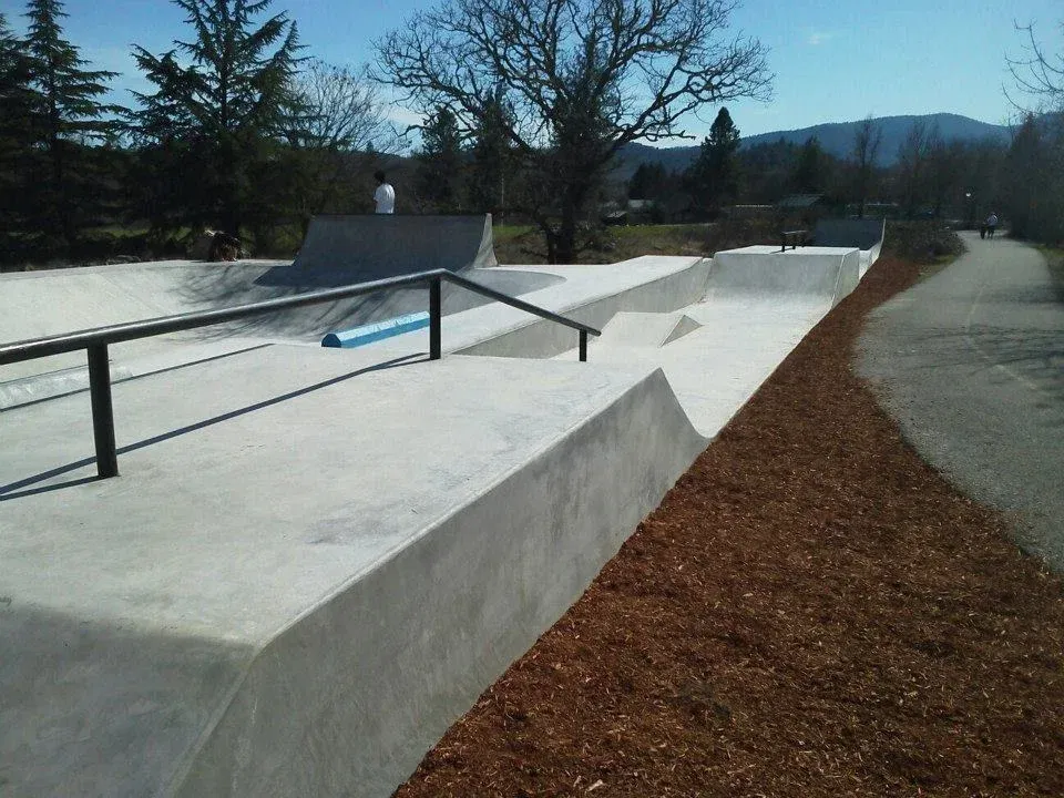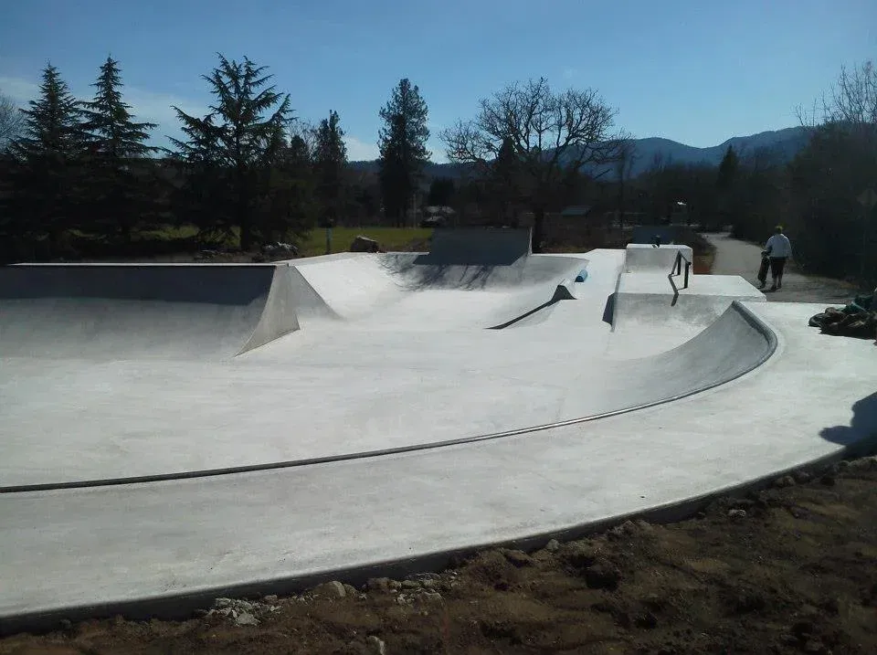 Gold Hill skatepark is a concrete park featuring a bowl and transition area with street elements. The Skatepark Project helped fund this skatepark in 2011 and was built by Dreamland Skateparks.