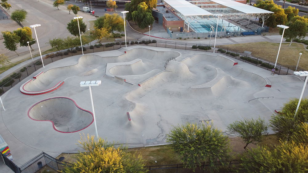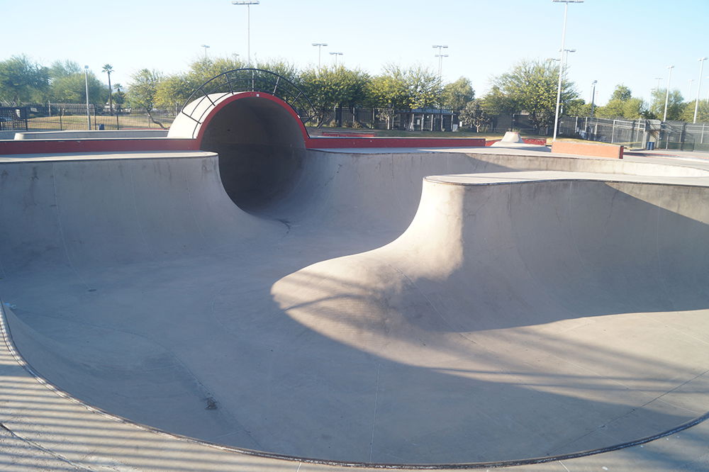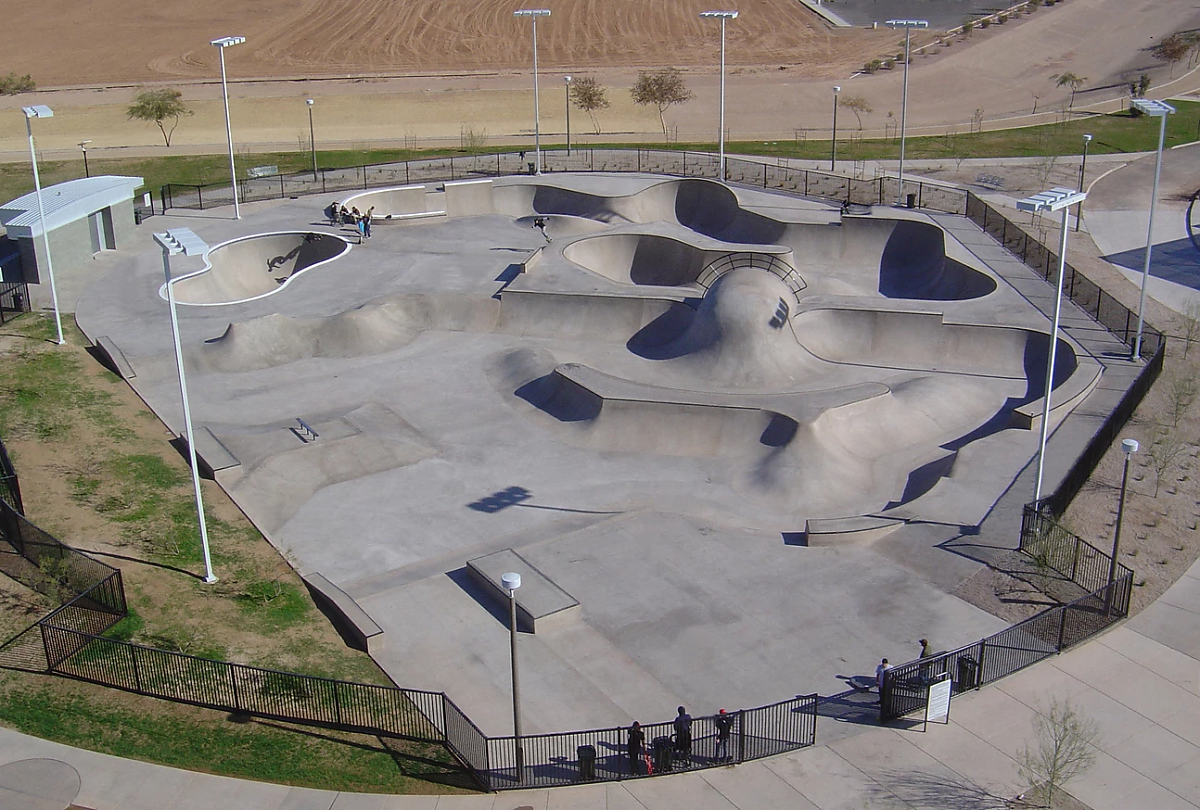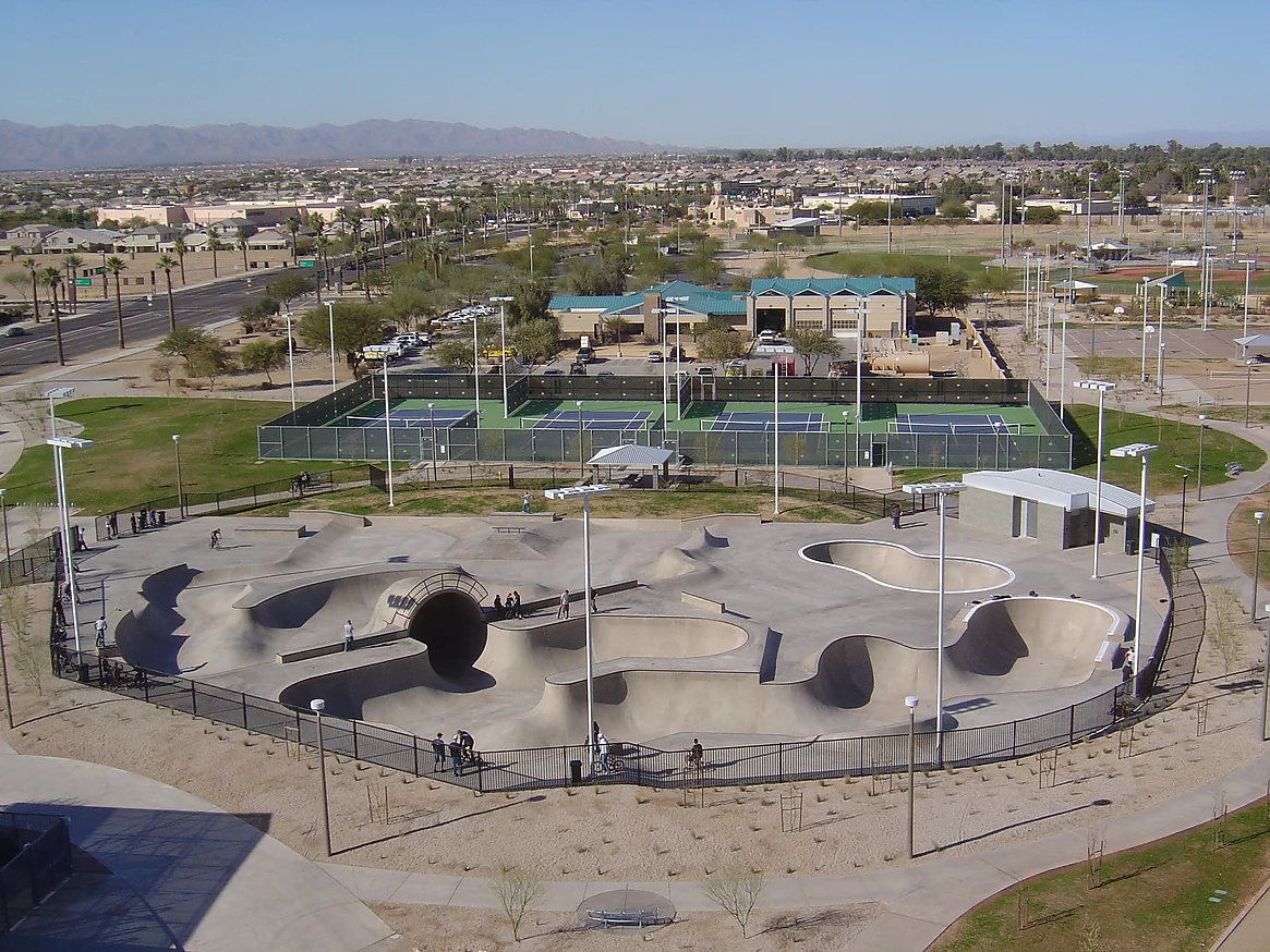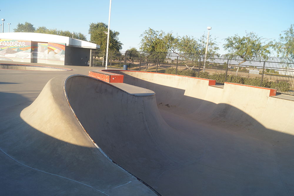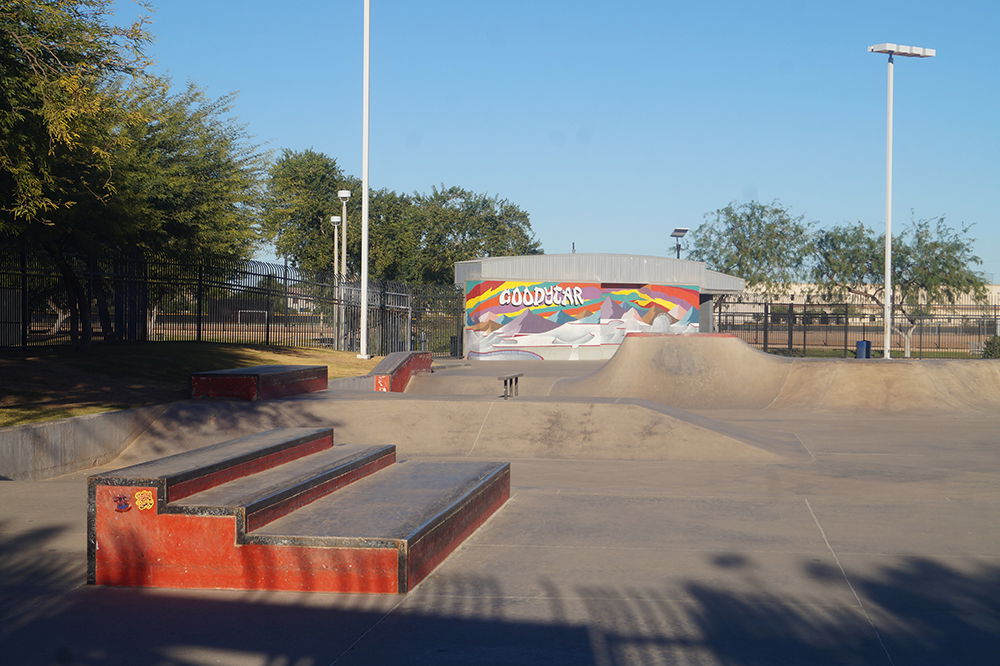 Goodyear Skatepark, located in Goodyear, Arizona, opened in 2007 and spans approximately 32,500 square feet, making it one of the larger skateparks in the state. The park was designed by the well-known Site Design Group and built by Wormhoudt Inc. It was constructed as part of Goodyear Community Park, offering a variety of features suited for skaters of all levels.