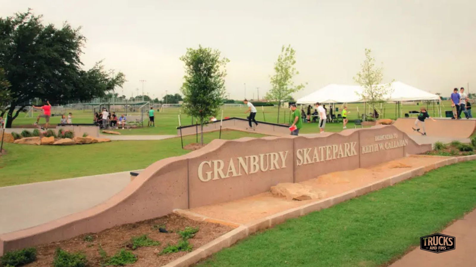 Granbury skatepark is a concrete park featuring two skatebowls and a street section. The skatepark is located in Granbury city park and has lights. The skatepark is located just a few blocks from the downtown square within Granbury City Park. The facility is situated next to a sports field complex, a disc golf course, and walking trail. Shade from a mature oak tree provides relief to skaters and offers a pleasant place to watch the action. An existing restroom building is located just a short walk away. Granbury Skatepark is connected to the City’s Moments in Time Hike and Bike Trail, allowing skaters easy and safe access to the site. In April of 2014, the City Council acted upon a recommendation from the Parks Board and voted to dedicate the Granbury Skatepark to Keith Callahan. Mr. Callahan served the City of Granbury for 34 years and retired in January 2014 as the City Services Director. The skatepark was designed and built by SPA skateparks.