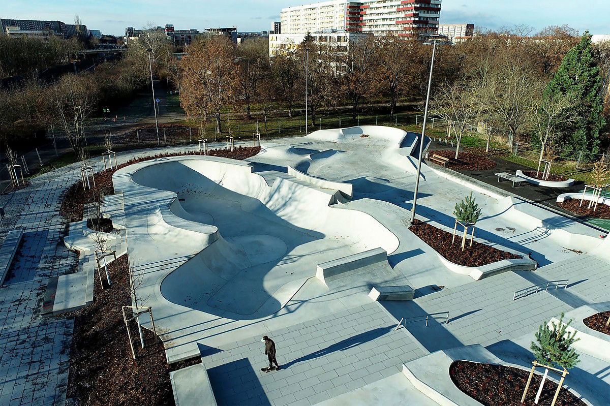 Grünau Parkalle skatepark is a 2500 square meter park built by Yamato Livingramps in 2021. It‘s a really nice state of the art park with pretty much everything you dream of: 3m deep-end with pool coping, granite ledges, real street spots, flow section, rail-lines, you name it...