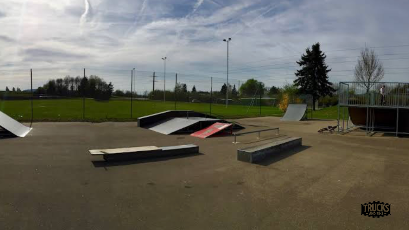 Halsrüti Brüttisellen skatepark features a miniramp and some other obstacles. This mini ramp was built in September 2013. It is located directly between the Halsrüti tennis hall and the football field.