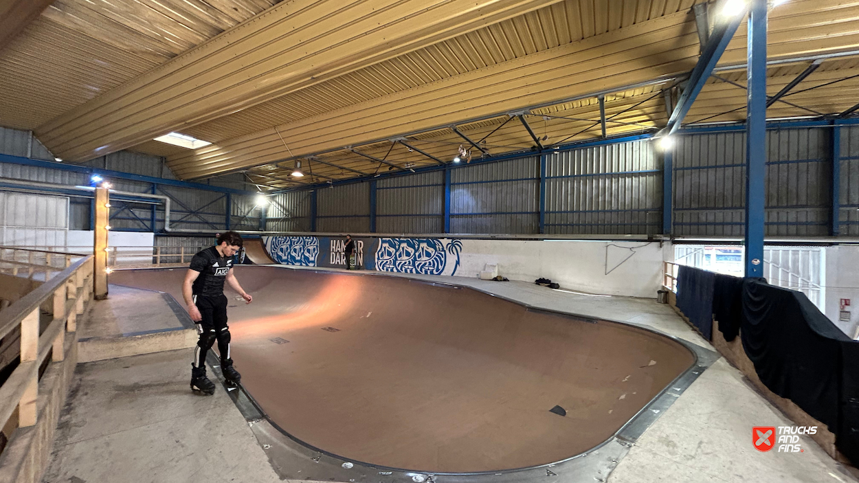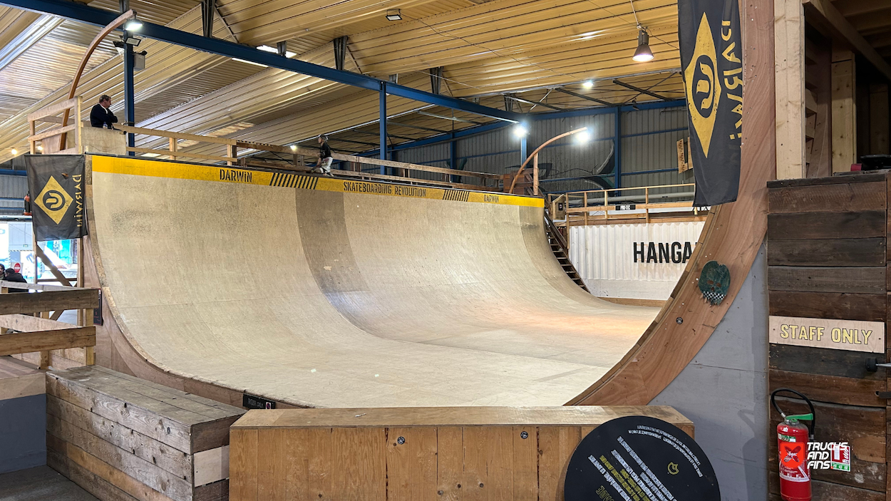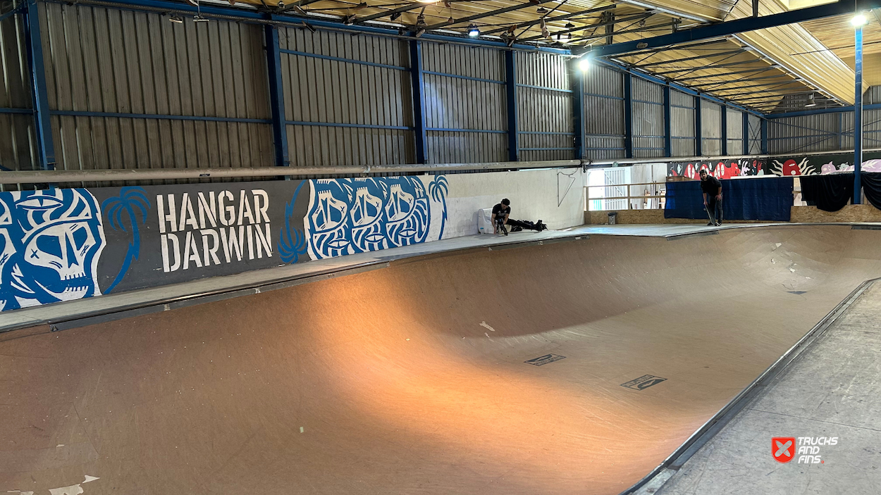 Hangar Darwin skatepark is an indoor skatepark featuring a bowl, miniramps and a nice street section in an industrial space with graffiti-covered walls and funky art. Bucket list park.