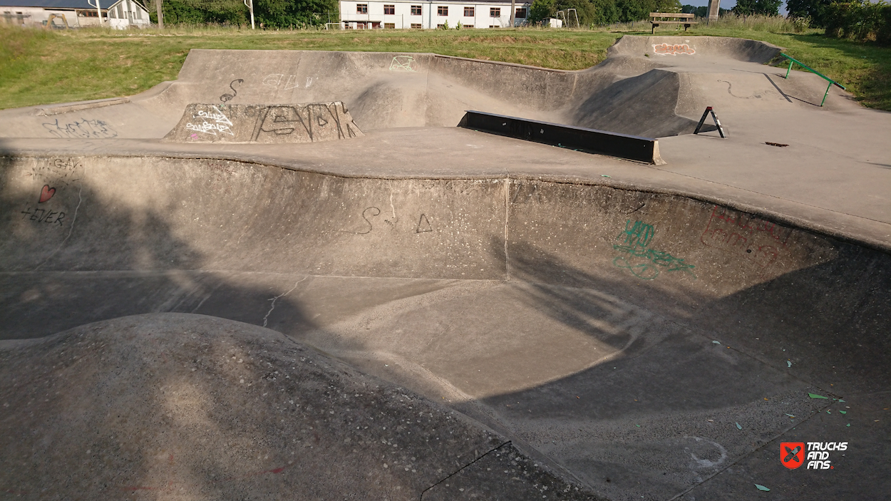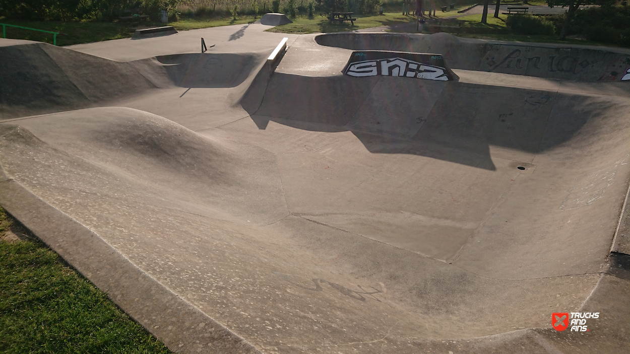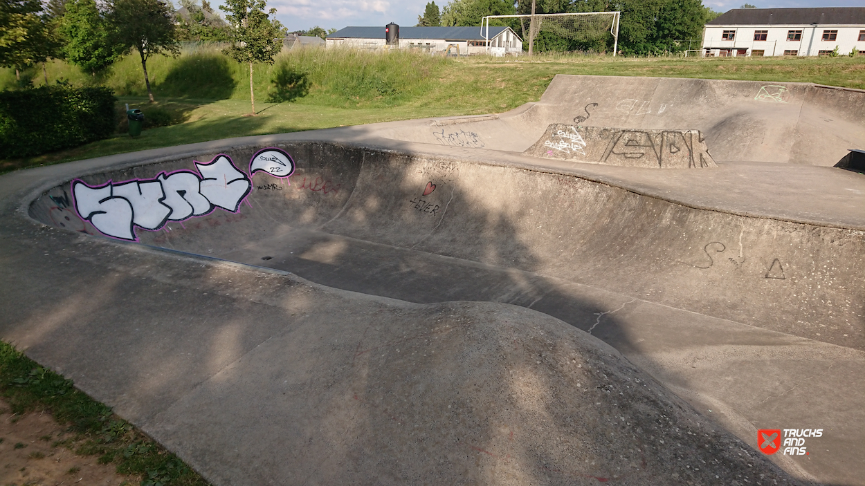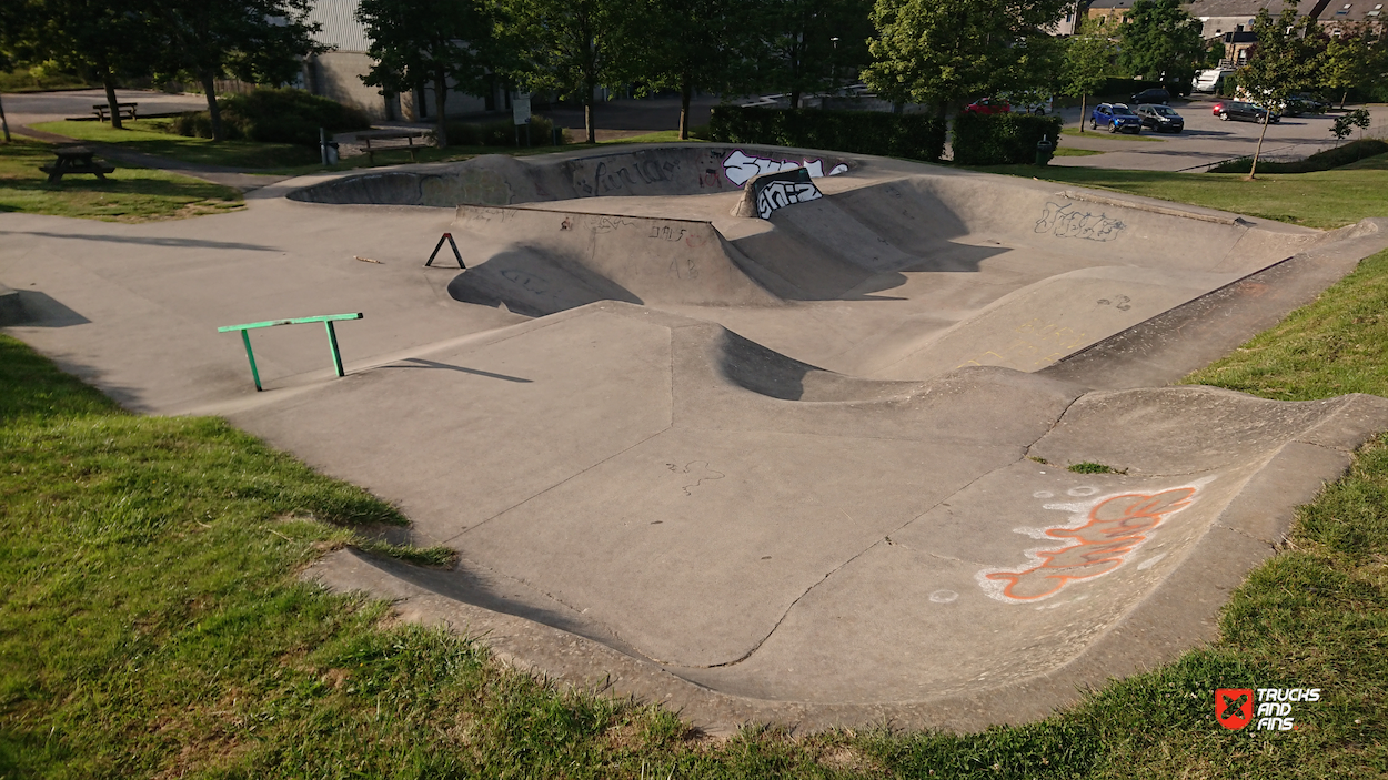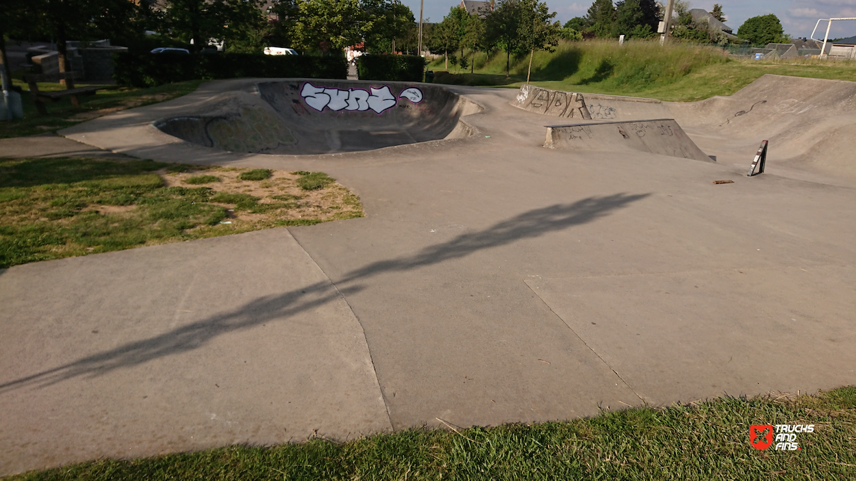 Havelange Skatepark is a concrete park featuring a bowl, transition section and several street obstacles.
